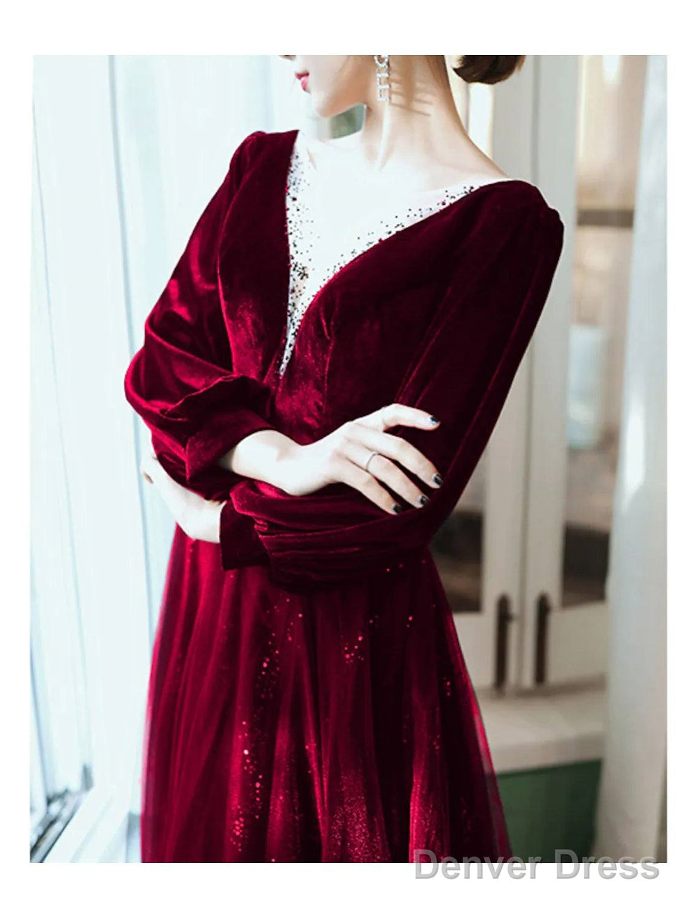 A-Line Bridesmaid Dress Jewel Neck Long Sleeve Elegant Floor Length Tulle / Velvet With Sequin / Bandage