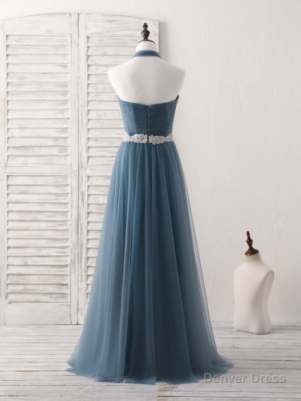 A-Line Gray Blue Tulle Long Bridesmaid Dress Gray Blue Prom Dress