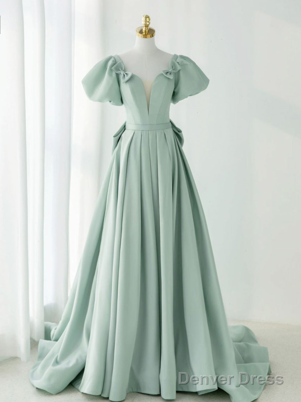A-Line Green Satin Long Prom Dress, Green Long Evening Dress