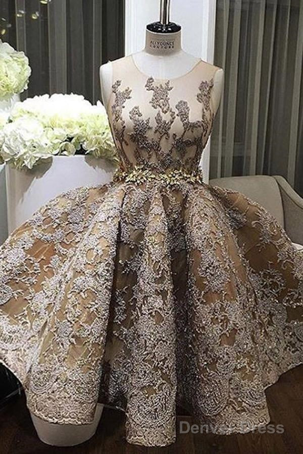 A-Line Jewel Sleeveless Short Prom Dress With Lace Appliques