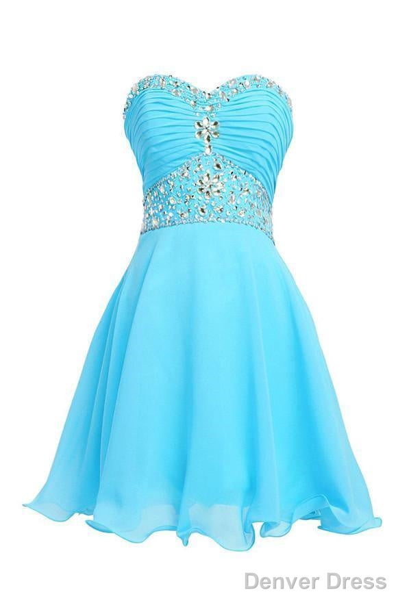 A-Line Knee Length Chiffon Blue Homecoming Dress With Crystals