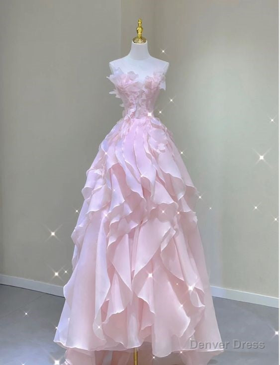 A Line Pink Long Prom Dresses,Strapless Evening Gown