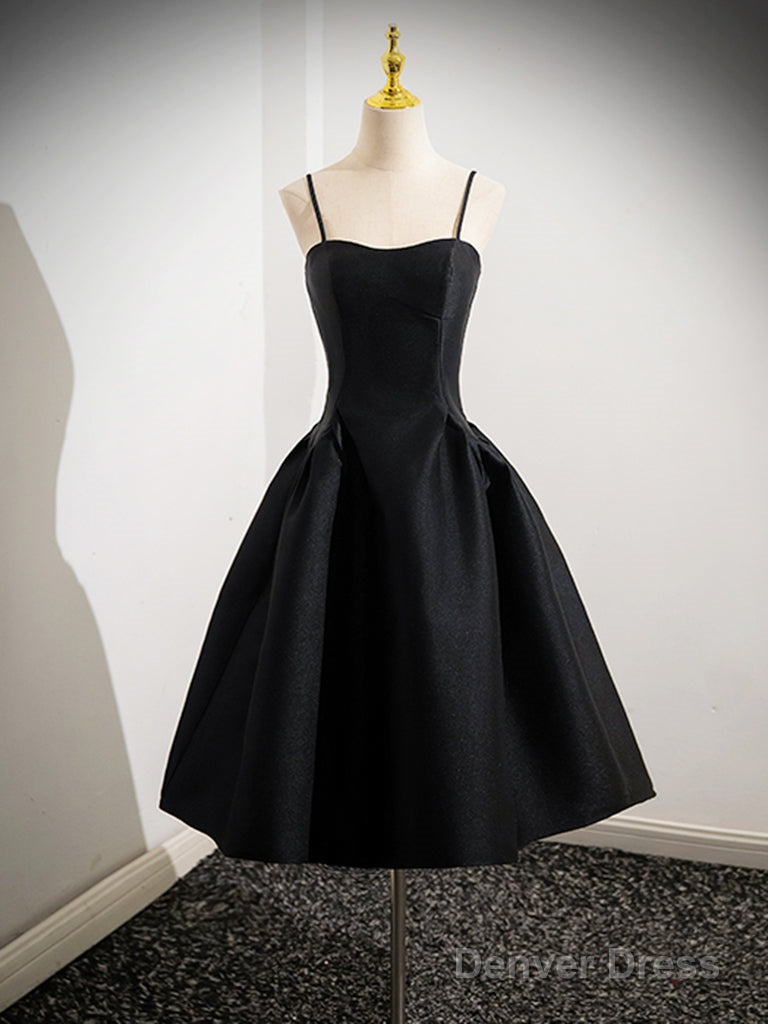 A-Line Satin Black Satin Short Prom Dress, Black Homecoming Dress
