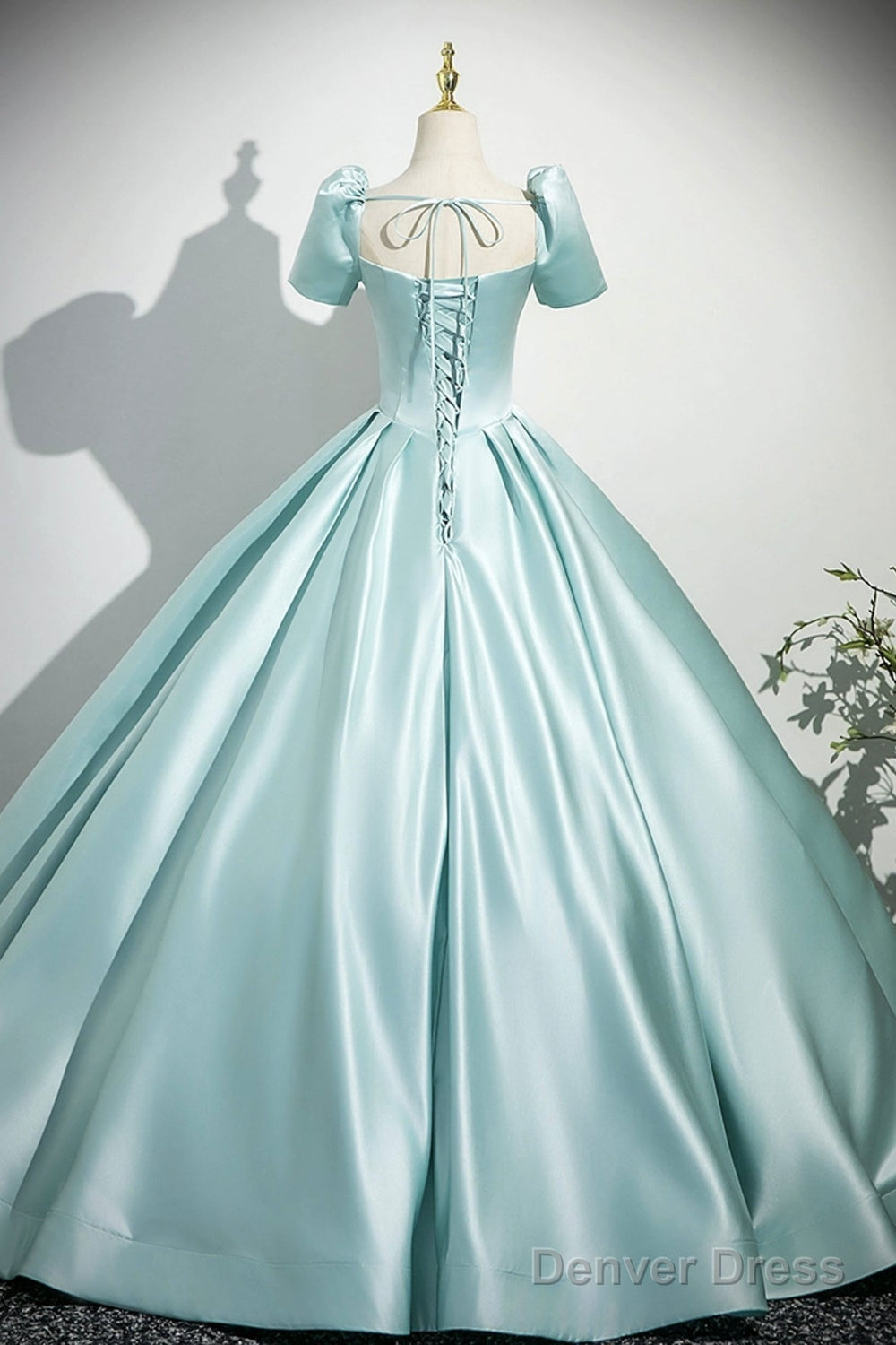 A-Line Satin Long Prom Dress, Beautiful Blue Short Sleeve Evening Party Dress