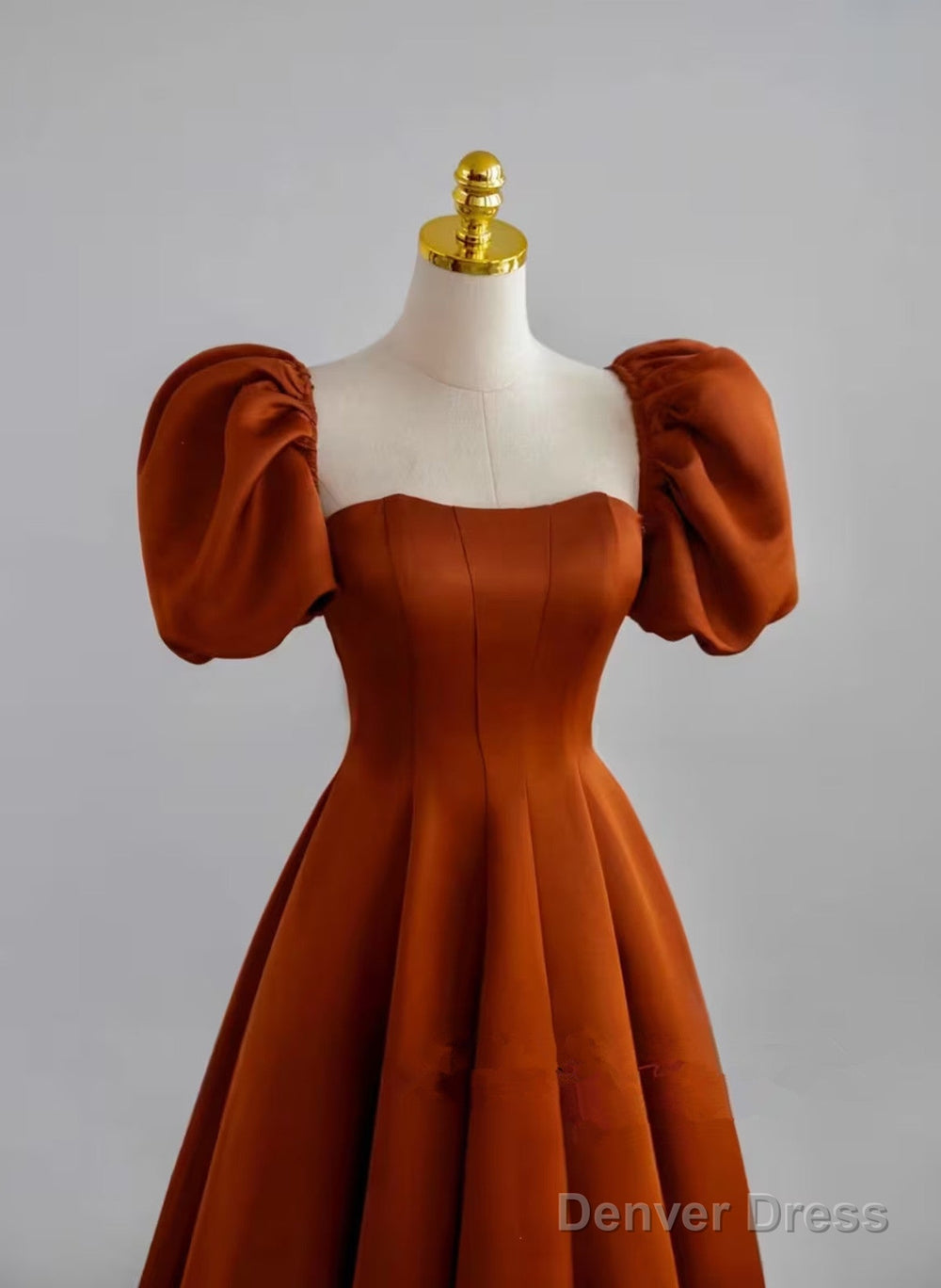 A-Line Satin Simple Short Sleeves Long Formal Dress, Satin Prom Dress