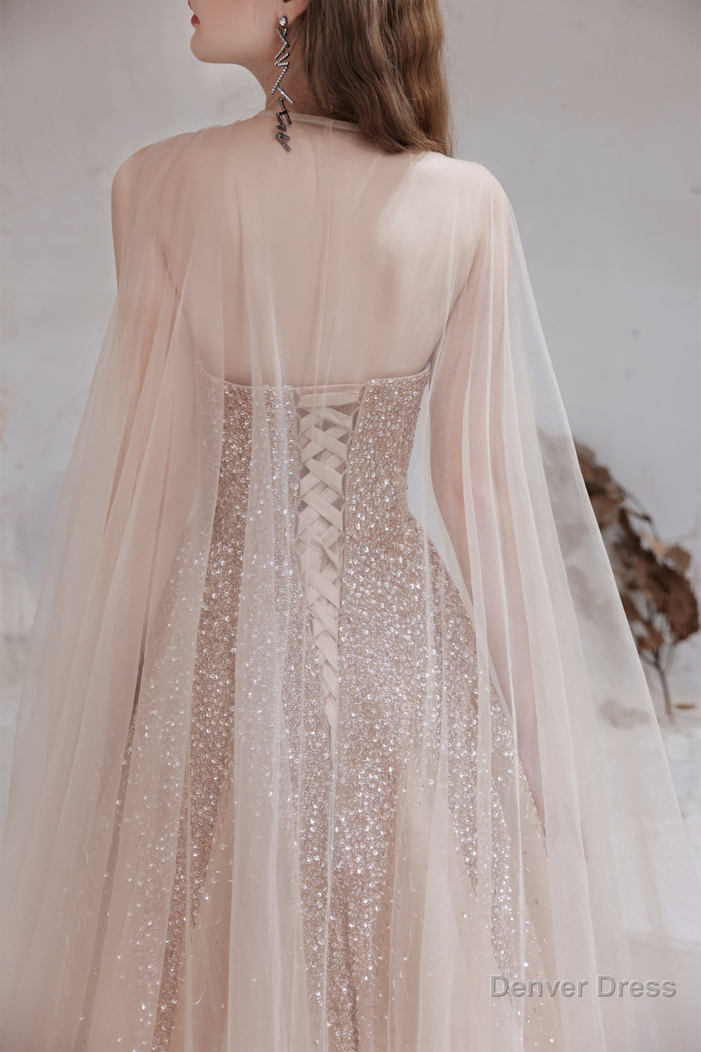 A Line Strapless Beading Tulle Court Train Prom Dresses