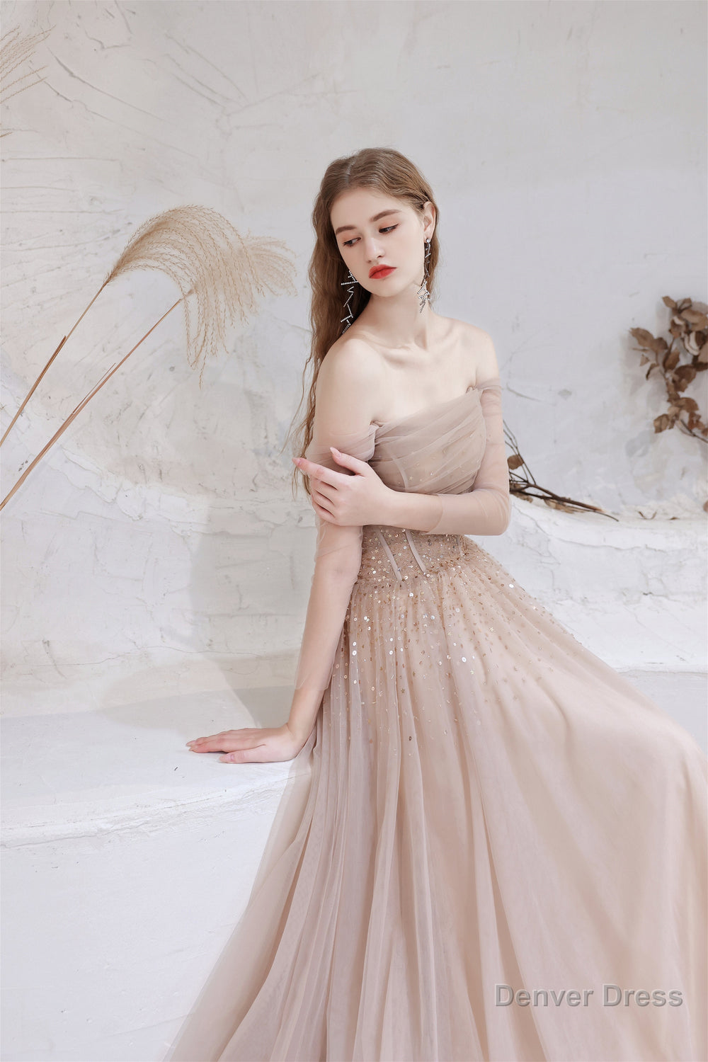 A-Line Strapless Off The Shoulder Lace Up Beading Tulle Long Prom Dresses