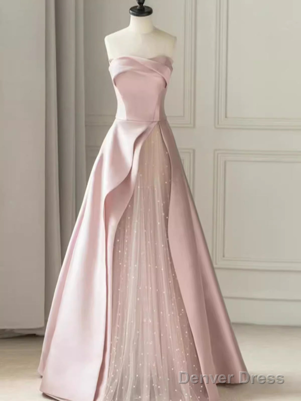 A Line Strapless Pink Party Dress Long Satin Prom Dress