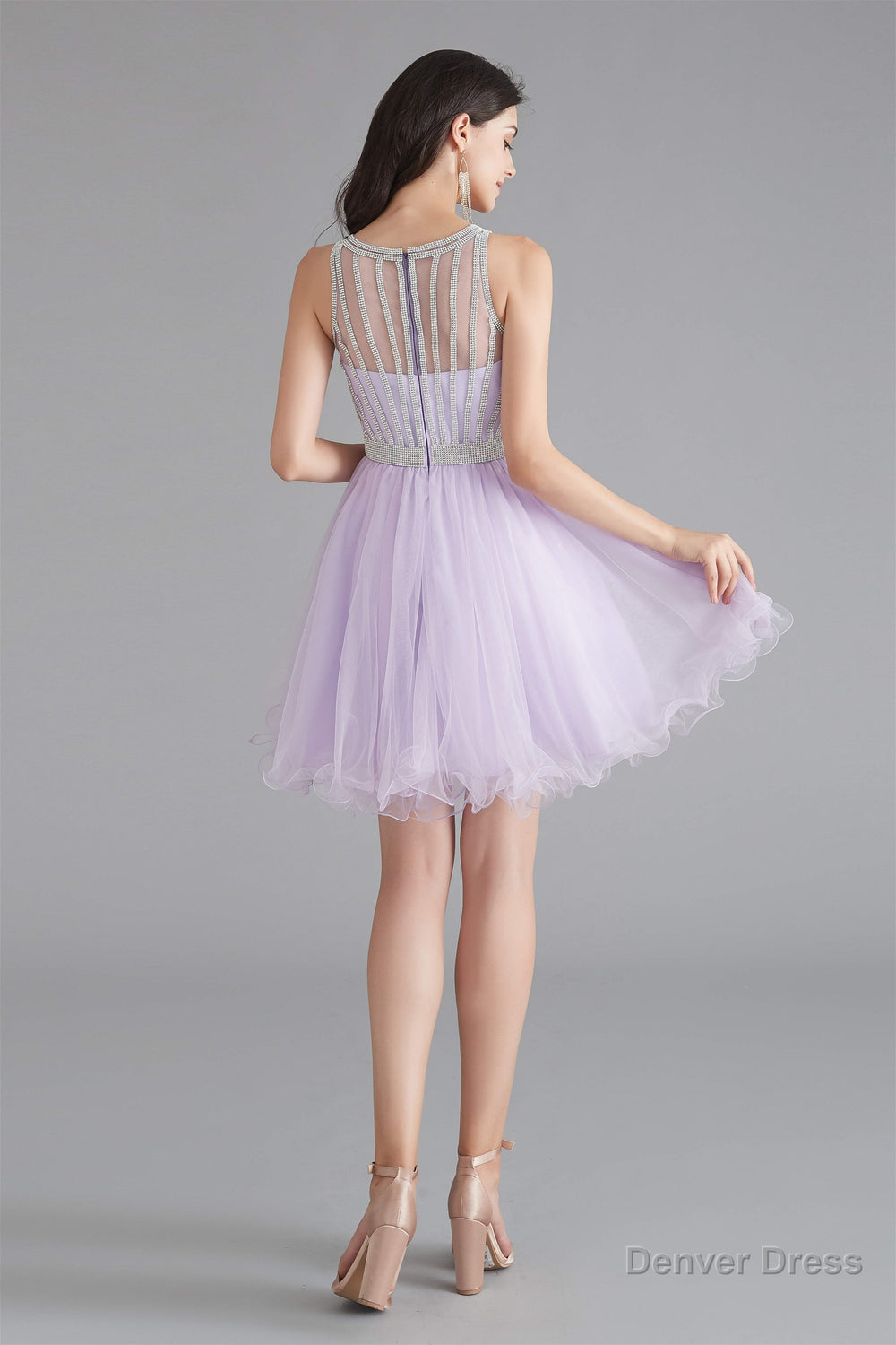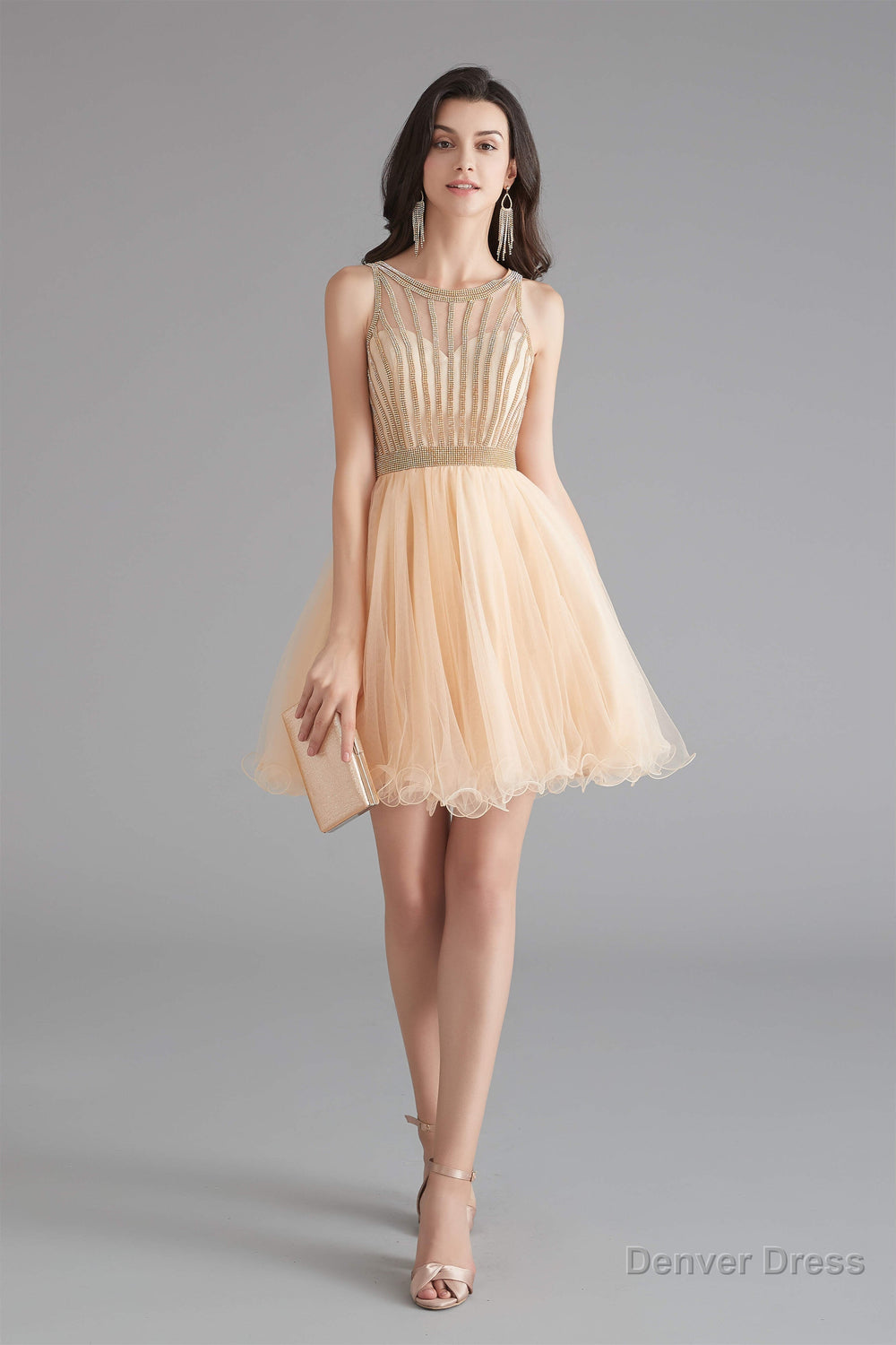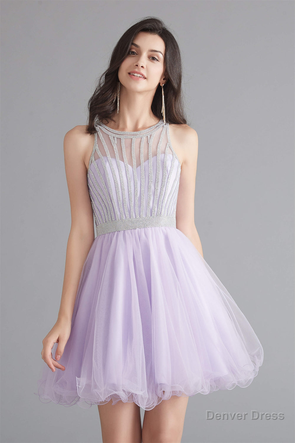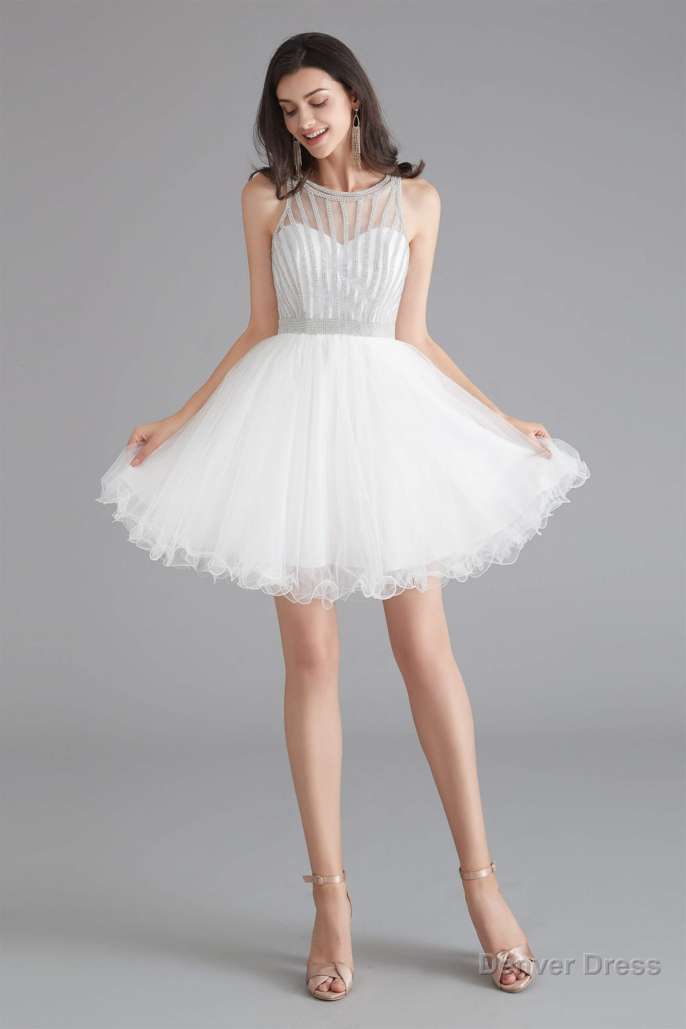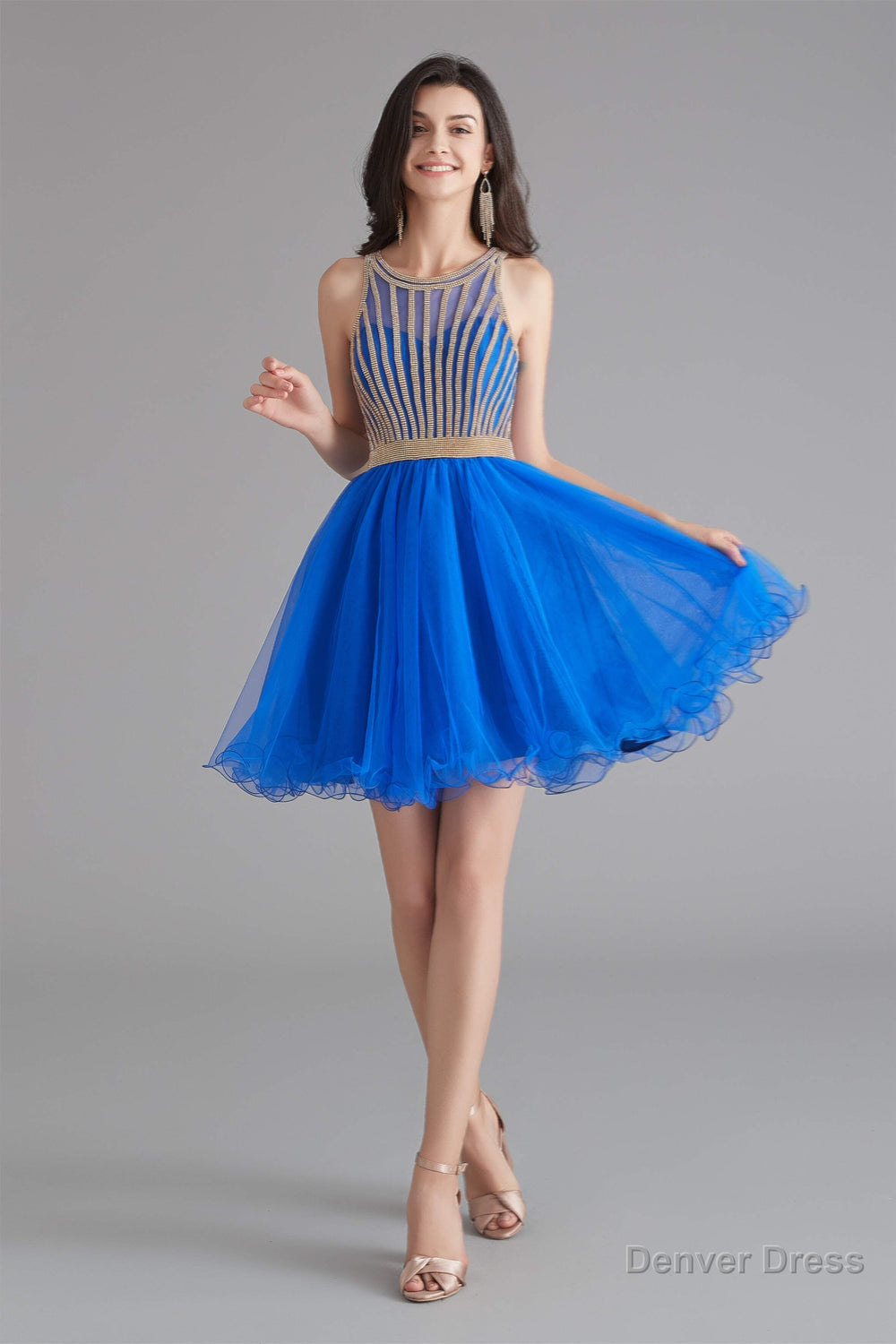 A-Line Tulle Sleeveless Beading Homecoming Dresses