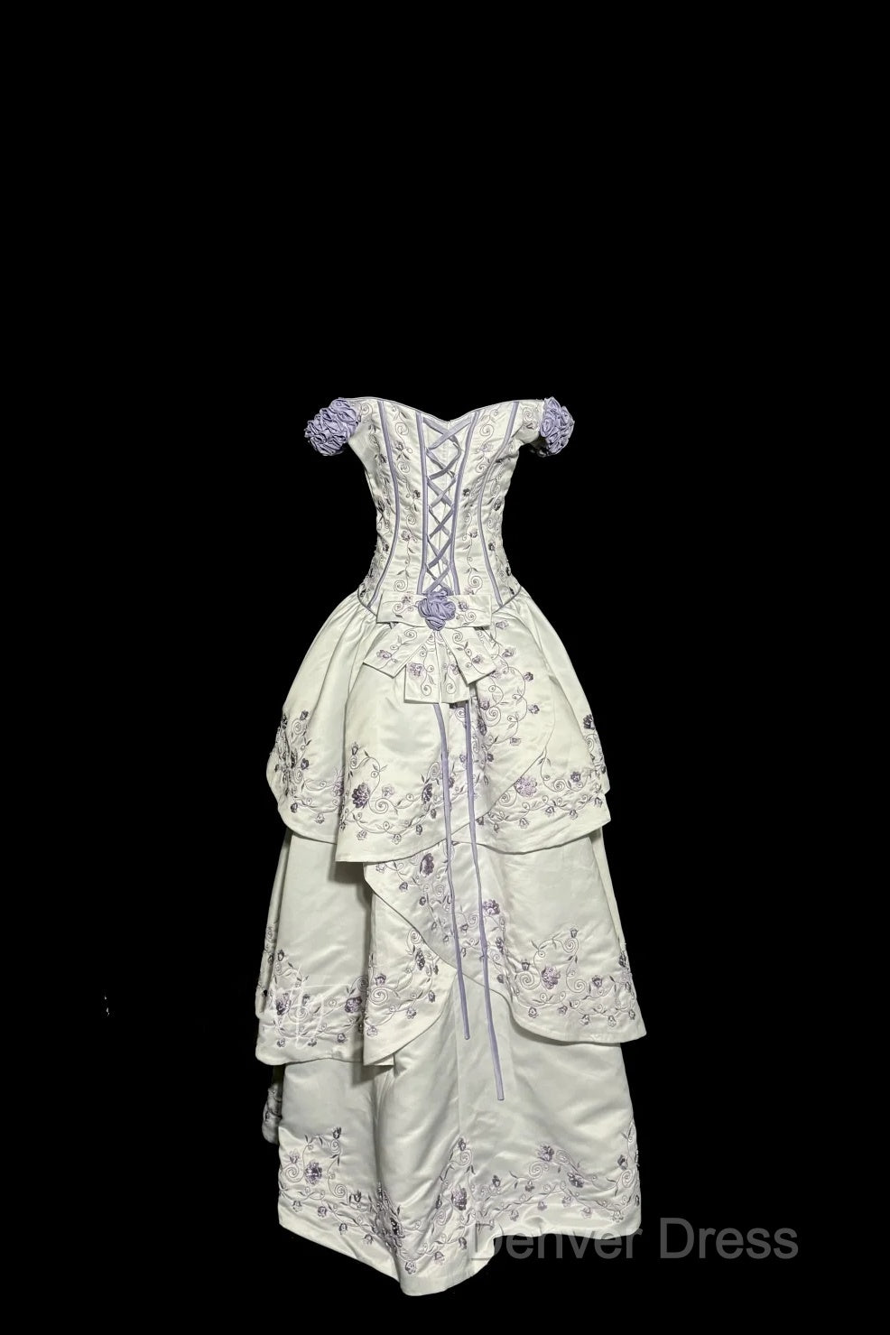 Aesthetic Ball Gown Off The Shoulder White Prom Dresses Ruffle Long Party Dresses