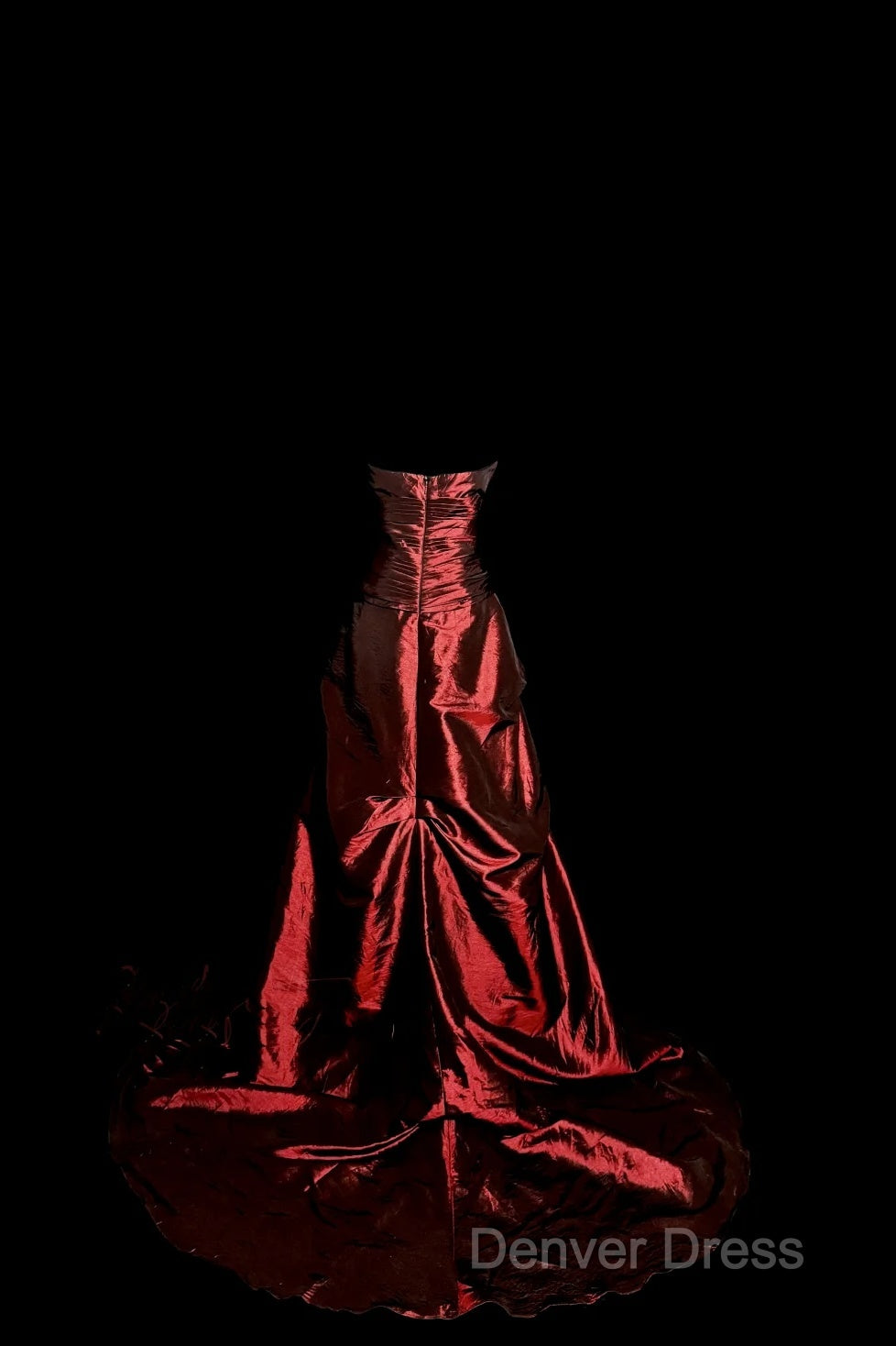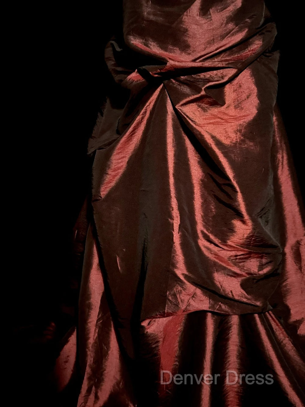 Aesthetic Ball Gown Strapless Burgundy Taffeta Prom Dresses Ruffle Long Party Dresses