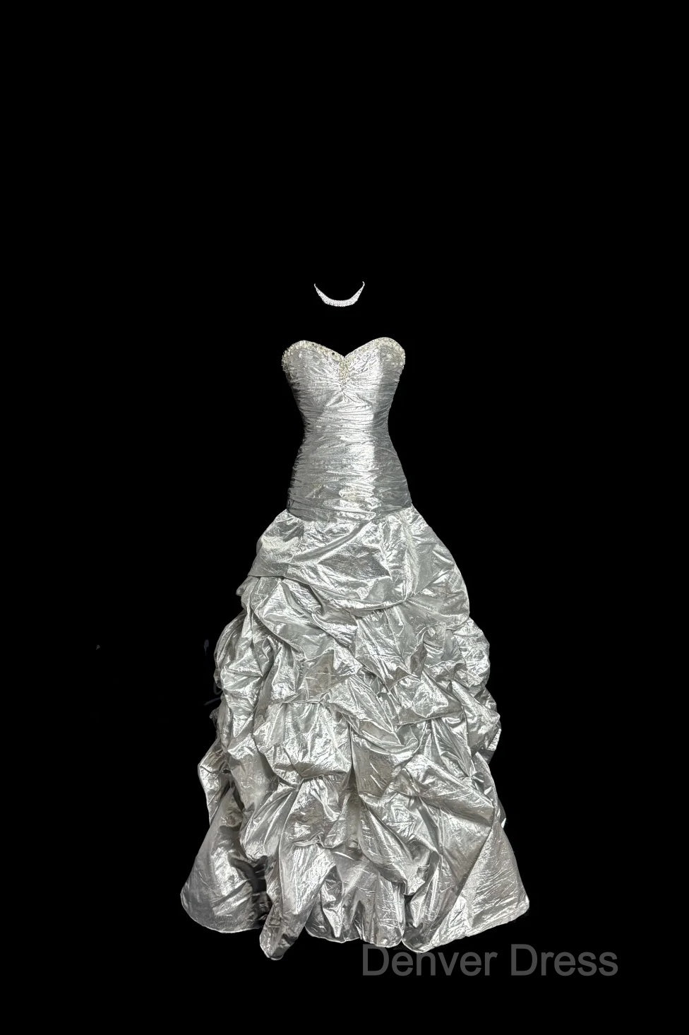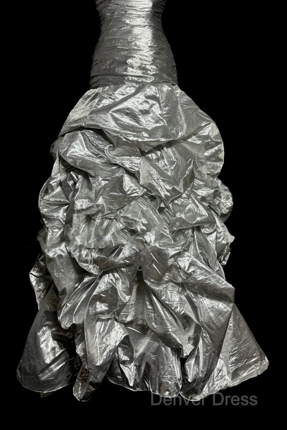 Aesthetic Mermaid Sweetheart Neckline Gray Taffeta Prom Dresses Ruffle Long Party Dresses