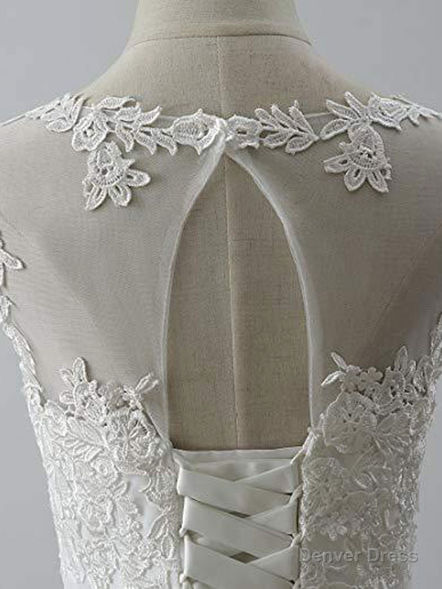 Aline Round Neck Tulle Lace Short White Prom Dress, White Lace Homecoming Dress