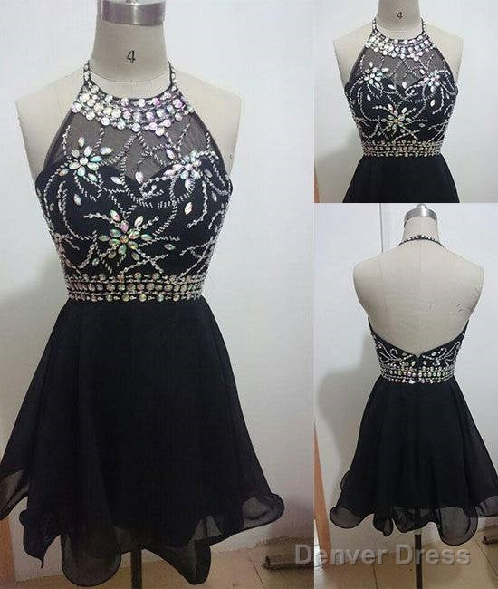 Backless Black Short Prom Dresses, Cute Homecoming Dresses