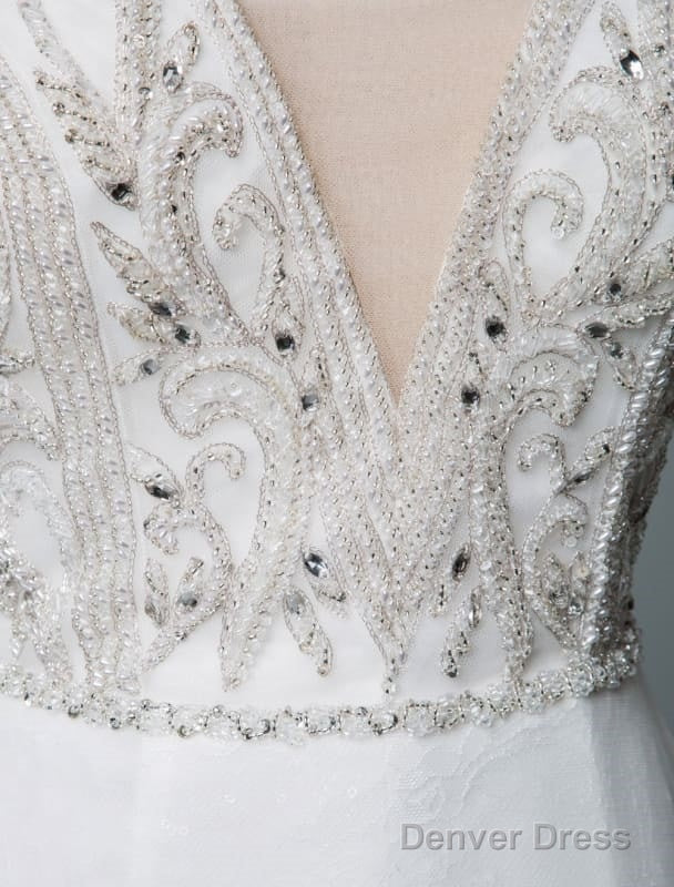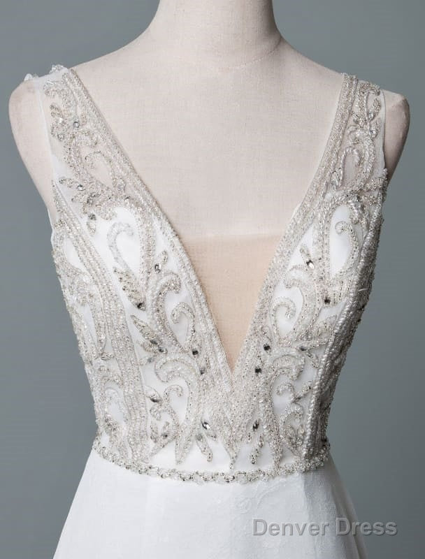 Beach Wedding Dress A Line Sleeveless V Neck High Split Floor Length Backless Sexy Bridal Gown