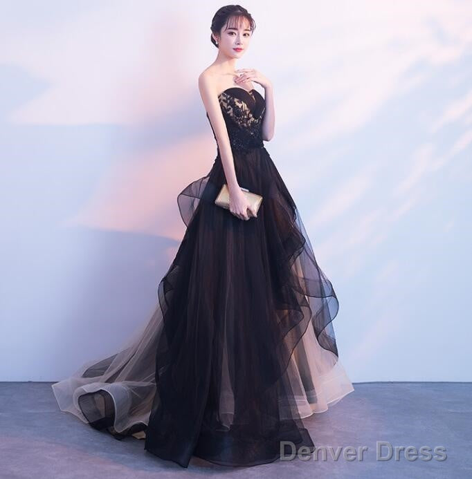 Beautiful Black And Champagne Tulle Sweethart Party Dress, Black Gown