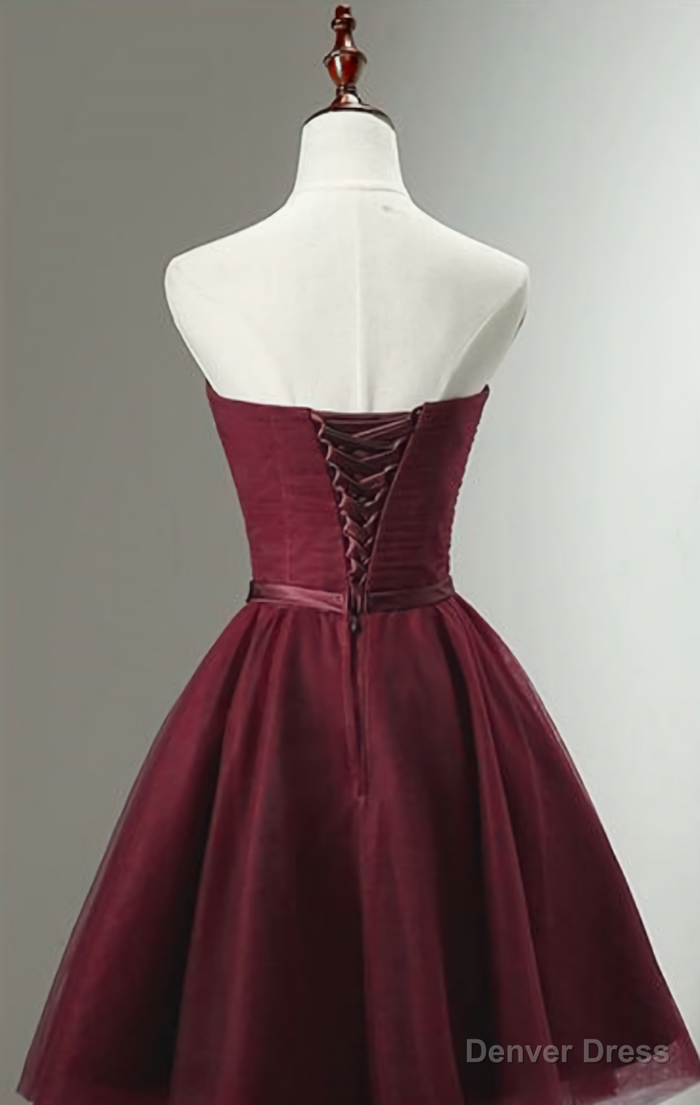 Beautiful Burgundy Knee Length Lace Up Tulle Party Dress, Homecoming Dress, Short Prom Dress