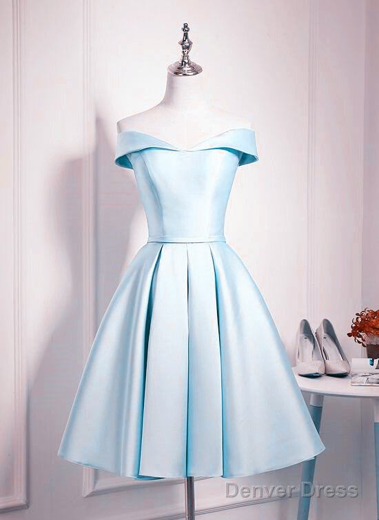 Beautiful Light Blue Satin Sweetheart Homecoming Dress, Blue Short Prom Dress