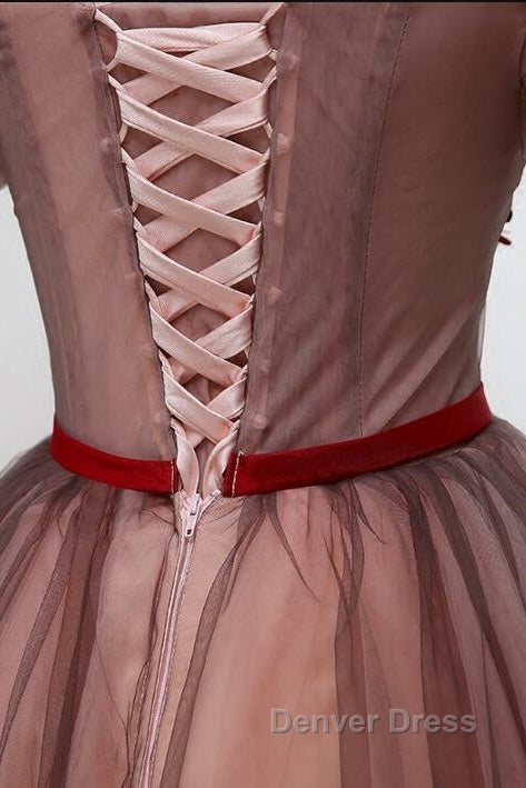 Beautiful Off Shoulder Tulle Knee Length Party Dresses , Red Homecoming Dresses With Applique