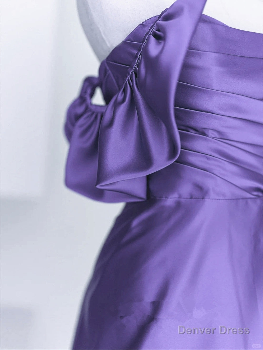 Beautiful Purple Satin Off Shoulder Formal Dress, Purple Satin Evening Dress Prom Dress