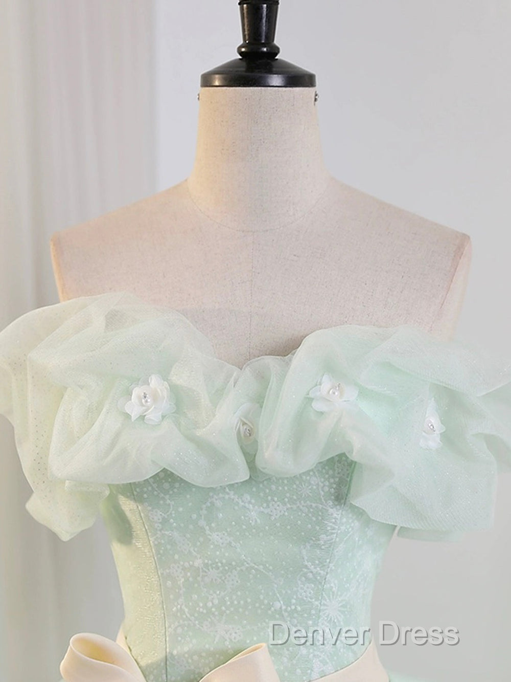 Beautiful Sage Green Tulle Floor Length Prom Dresses, A-Line Off The Shoulder Evening Part Dresses