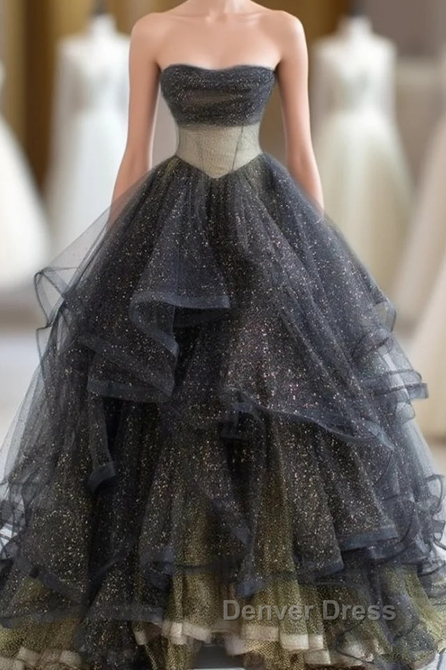 Black Ball Gown Long Prom Dresses, Black Evening Dresses
