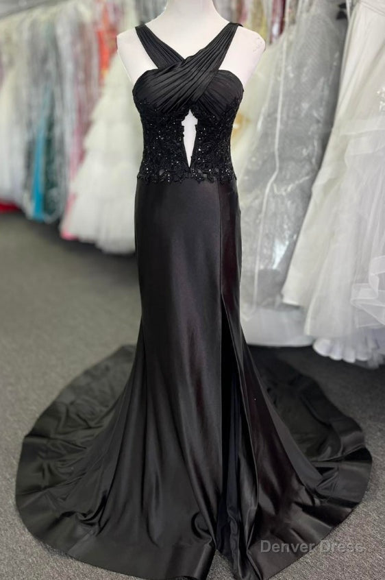 Black Halter Long Prom Dress with Corset Top and Slit Skirt