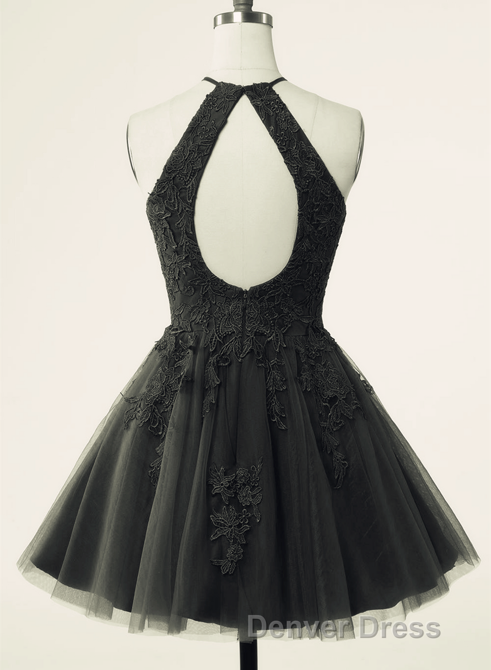Black Halter Tulle With Lace Short Party Dresses, Black Tulle Homecoming Dresses