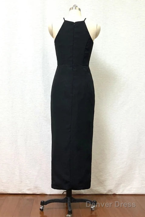Black High Neck Sheath Chiffon Bridesmaid Dress
