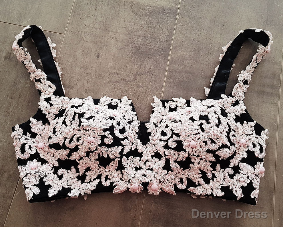 Black Lace Two Pieces Long Prom Dress, Black Evening Dress with Lace Beading