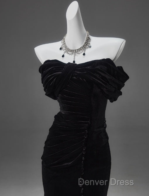 Black Mermaid Off-The-Shoulder Velvet Long Prom Dresses, Elegant Quinceanera Dresses
