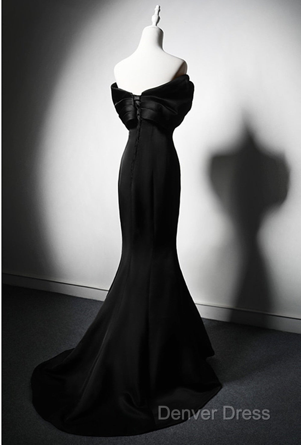 Black Mermaid Satin Off Shoulder Evening Dresses, Black Satin Prom Dresses