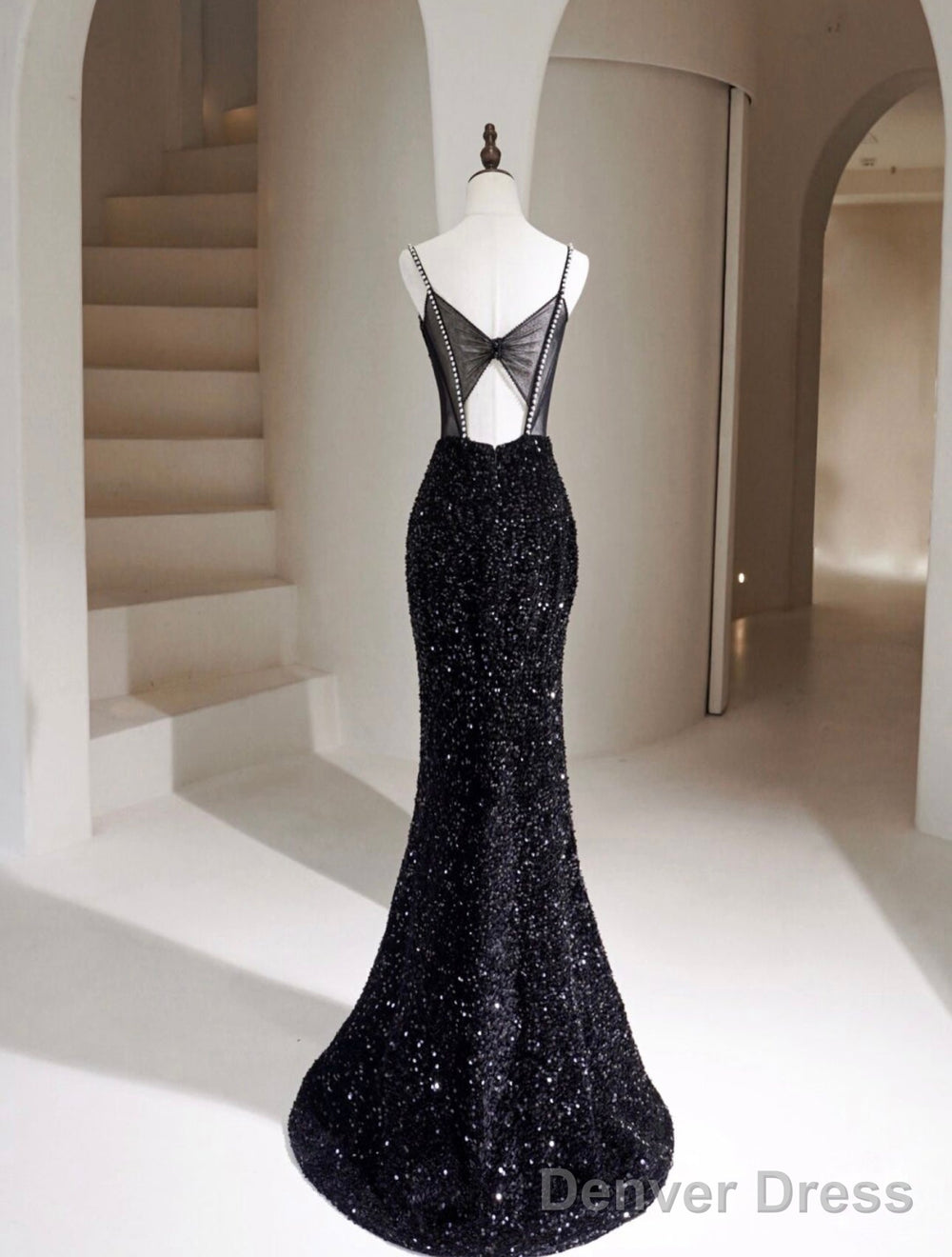 Black Mermaid Sequin Long Prom Dress, Black Formal Dress