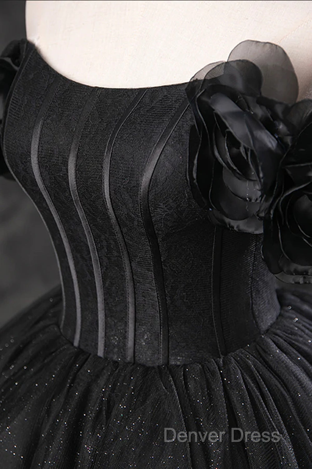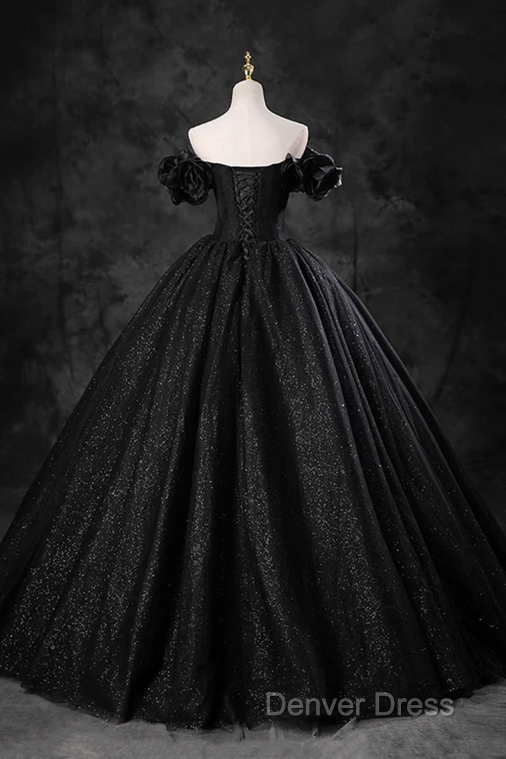Black Off Shoulder Tulle Lace-Up Sweet 16 Dresses, Black Long Party Dresses Prom Dresses
