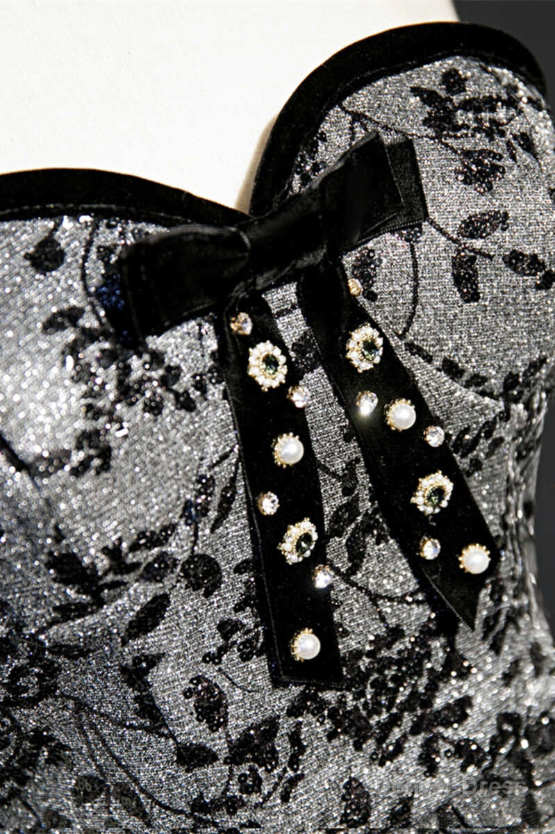 Black Print Sweetheart A-Line Homecoming Dress with Bow