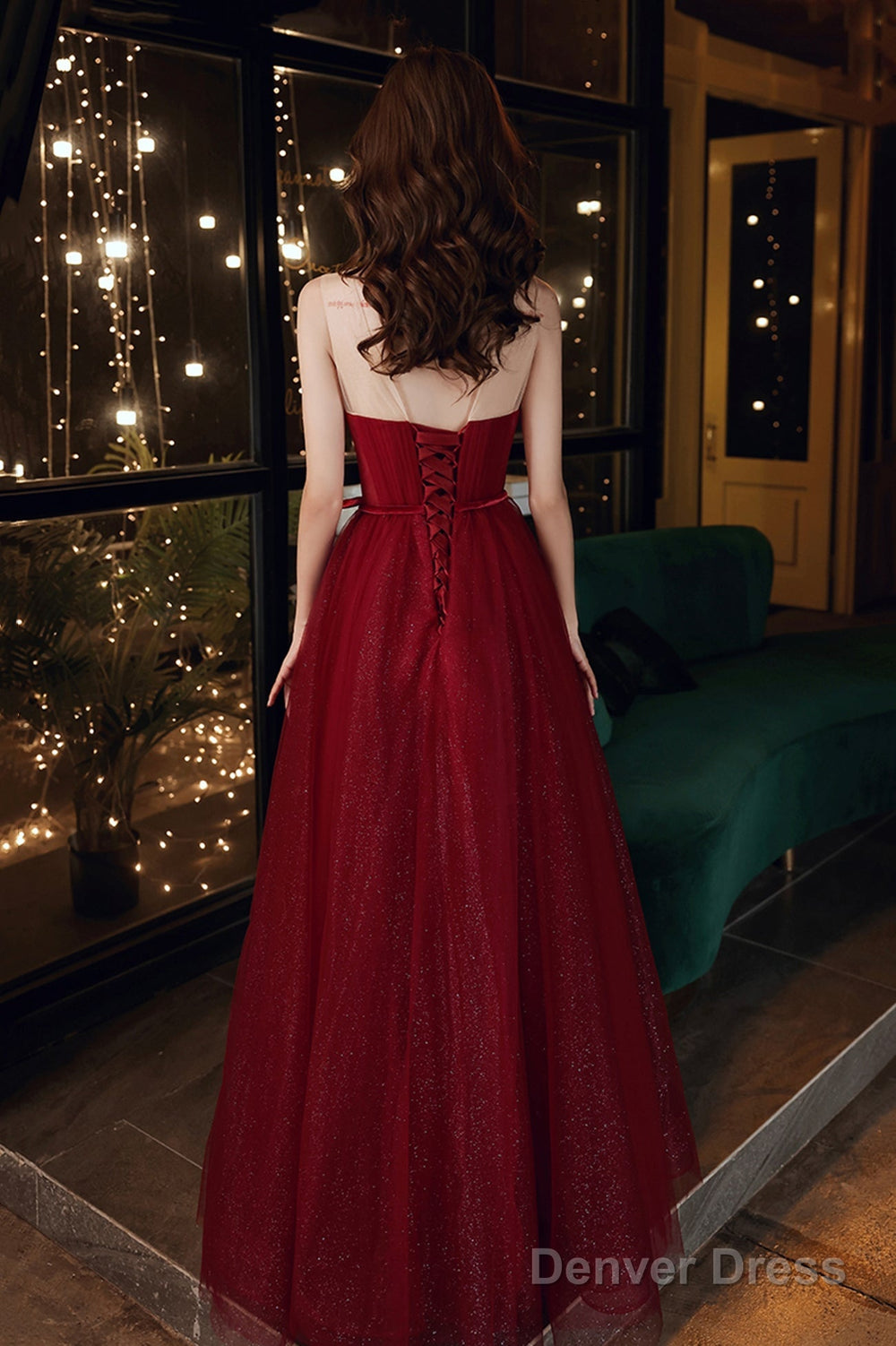 Black Scoop Neckline Tulle Long Prom Dress, A-Line Evening Party Dress