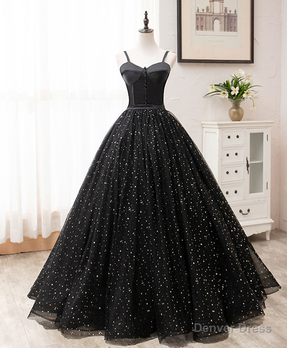 Black Sweetheart Tulle Long Prom Dress, Black Formal Sweet 16 Dress