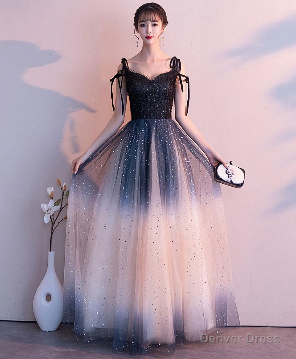 Black Sweetheart Tulle Sequin Long Prom Dress, Black Evening Dress