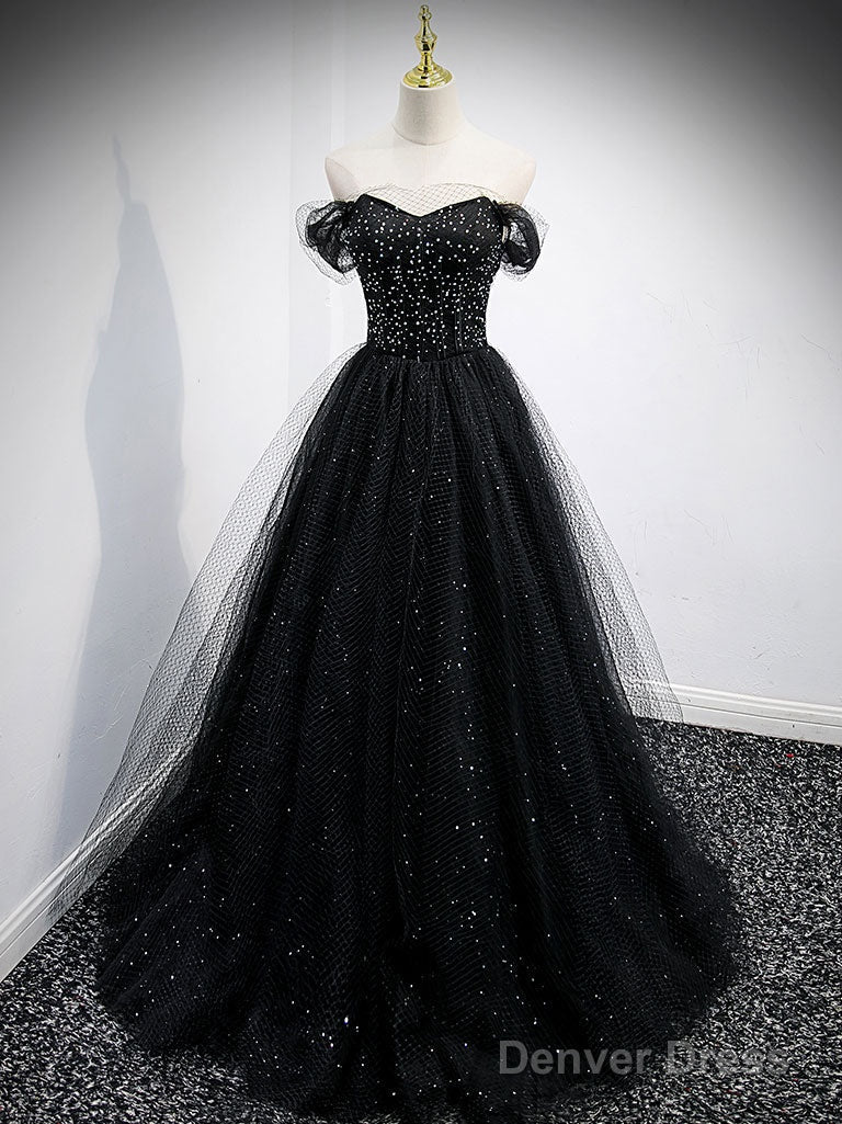 Black Tulle Sequin Long Prom Dress, Black Tulle Formal Dress