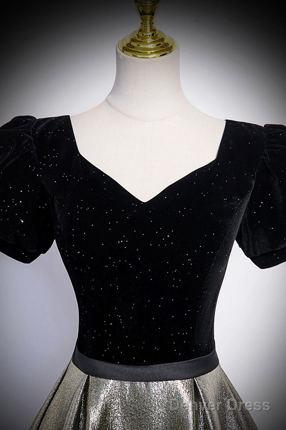 Black Velvet And Shiny Satin Long Prom Dress, Beautiful A-Line Evening Party Dress
