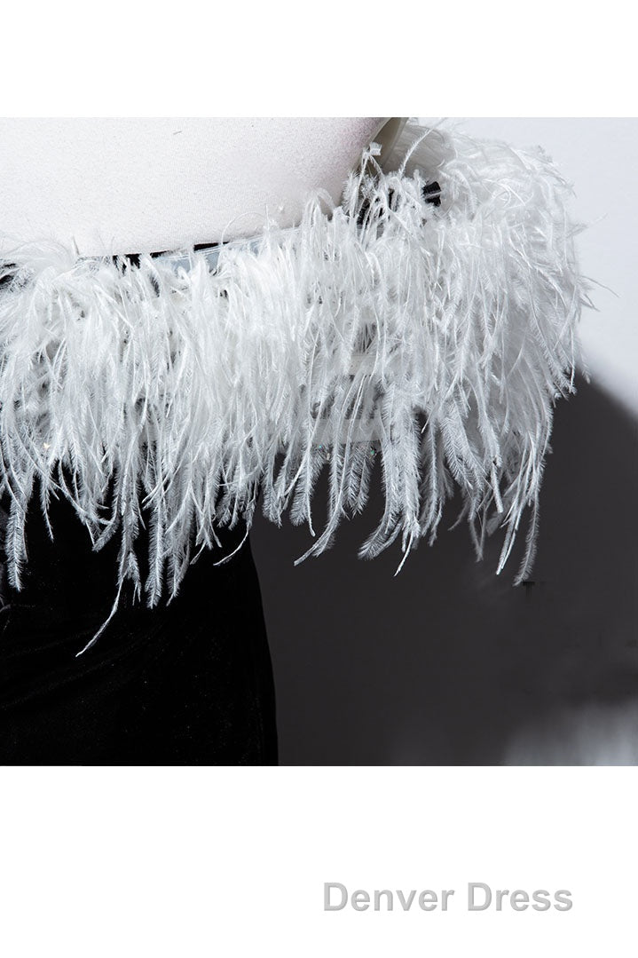 Black Velvet Mermaid Prom Dresses with Feather, Off the Shoulder Long Evening Gown