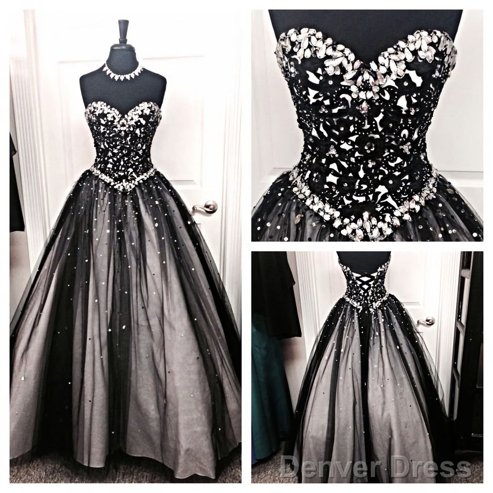 Black White Tulle Long Sweetheart Beaded Bodice For Teens Juniors Prom Dresses