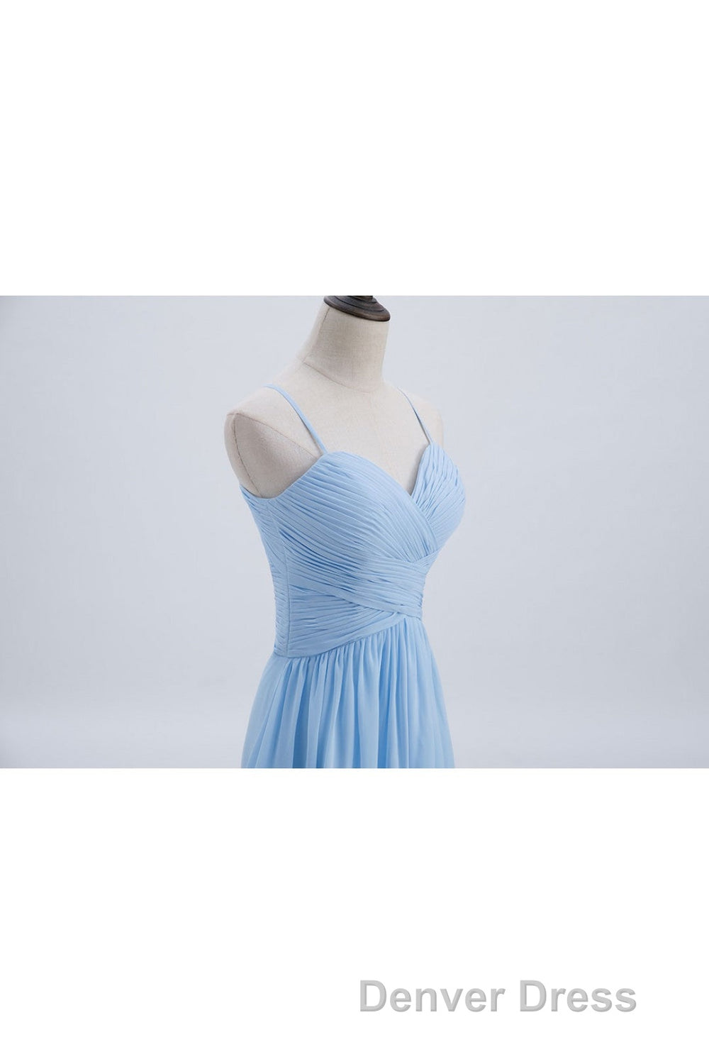 Blue Pleated Straps Chiffon Long Bridesmaid Dresses