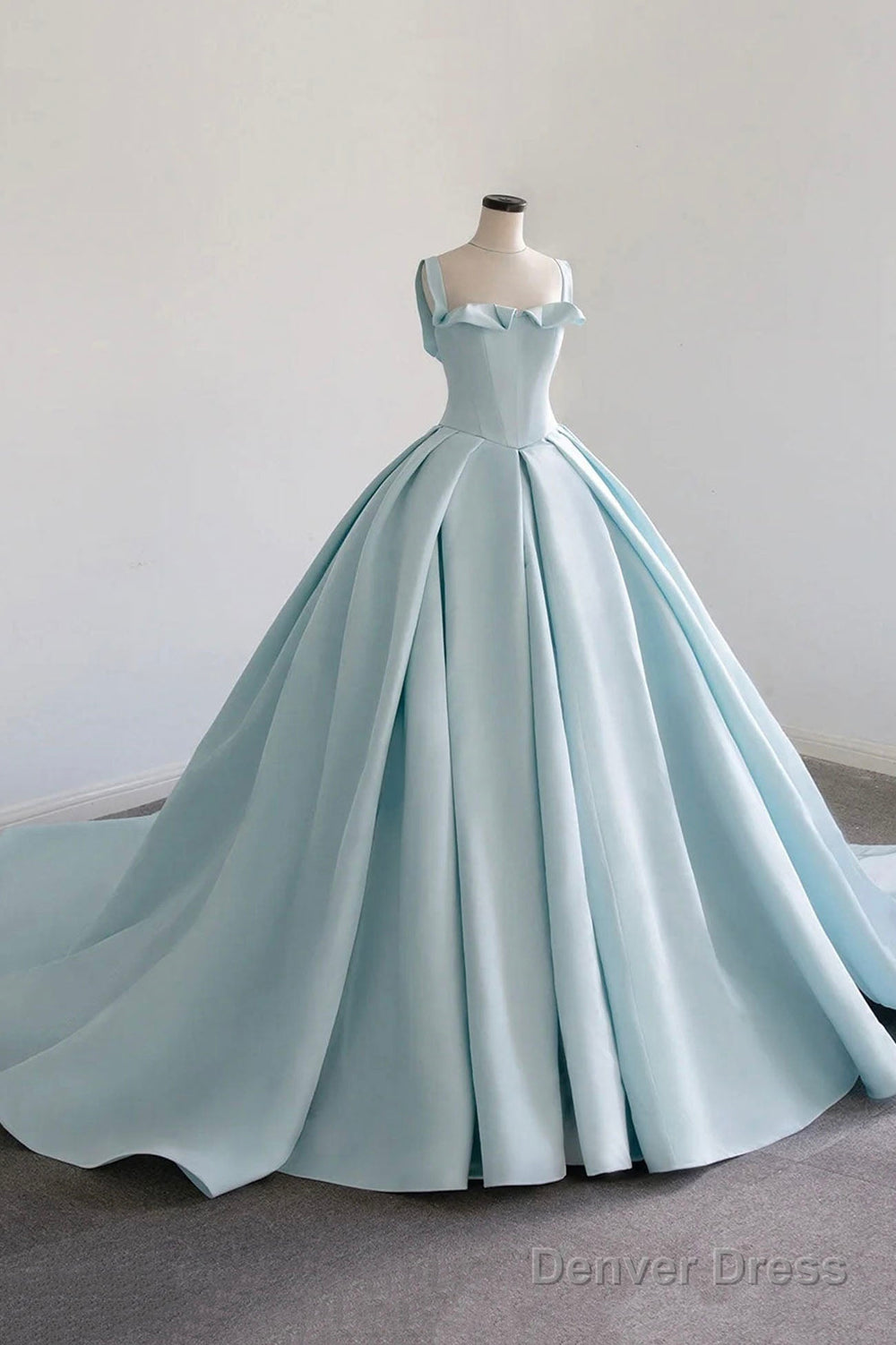 Blue Satin Long A-Line Formal Dress, Beautiful Blue Prom Evening Dress
