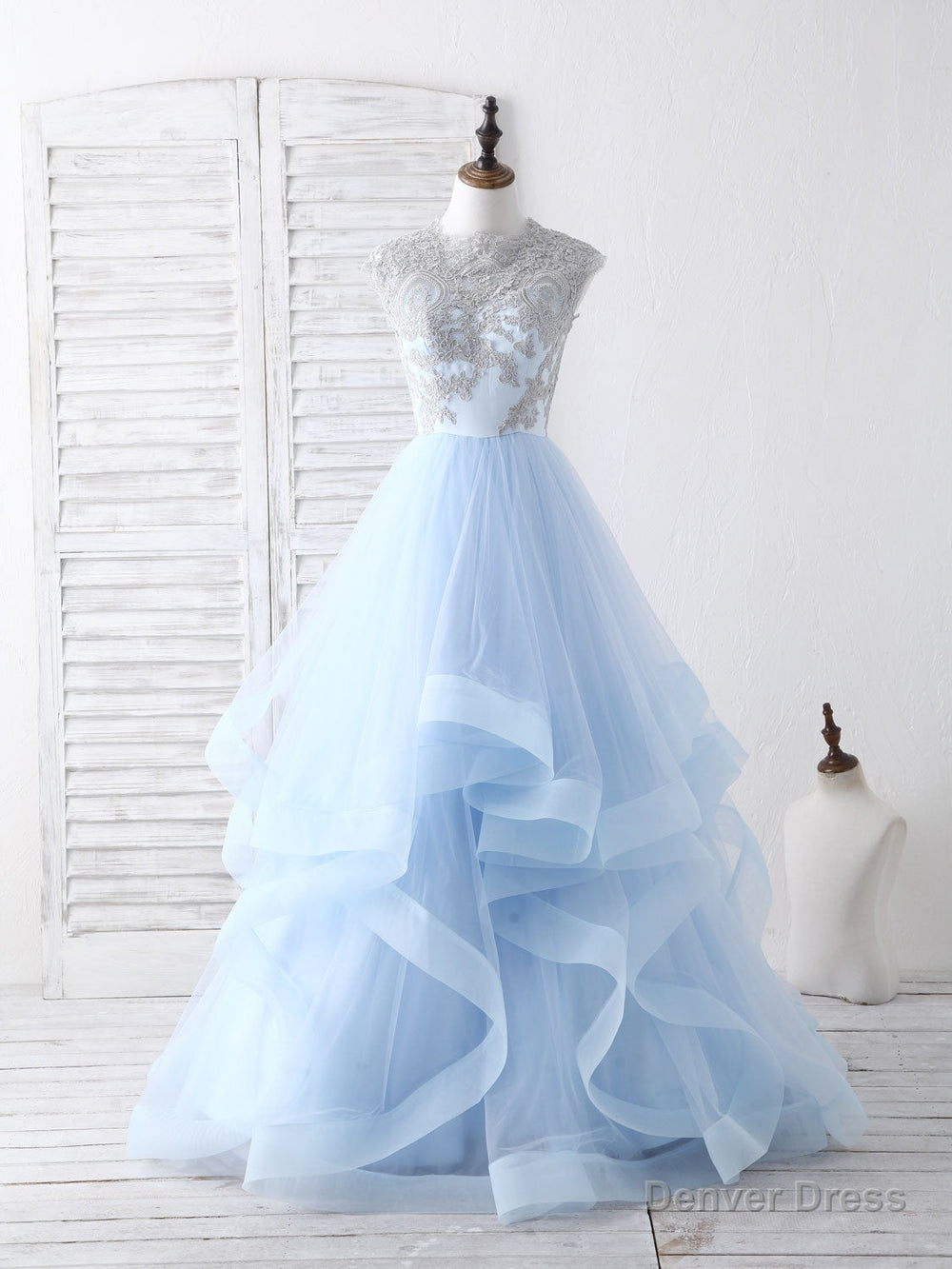 Blue Tulle Lace Applique Long Prom Dress Blue Tulle Sweet 16 Dress