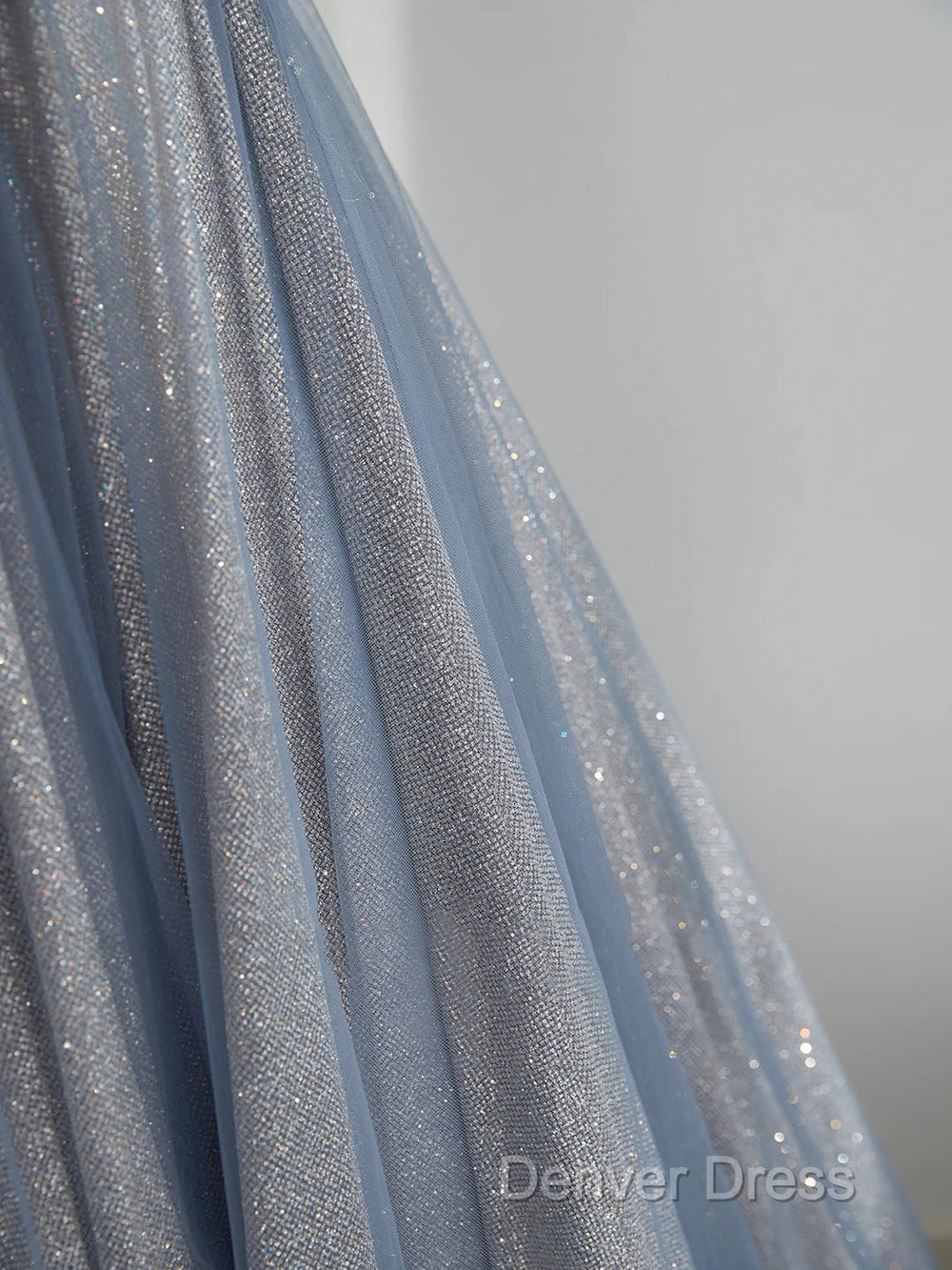 Blue Tulle Long Prom Dresses, A-Line Off The Shoulder Blue Evening Party Dresses