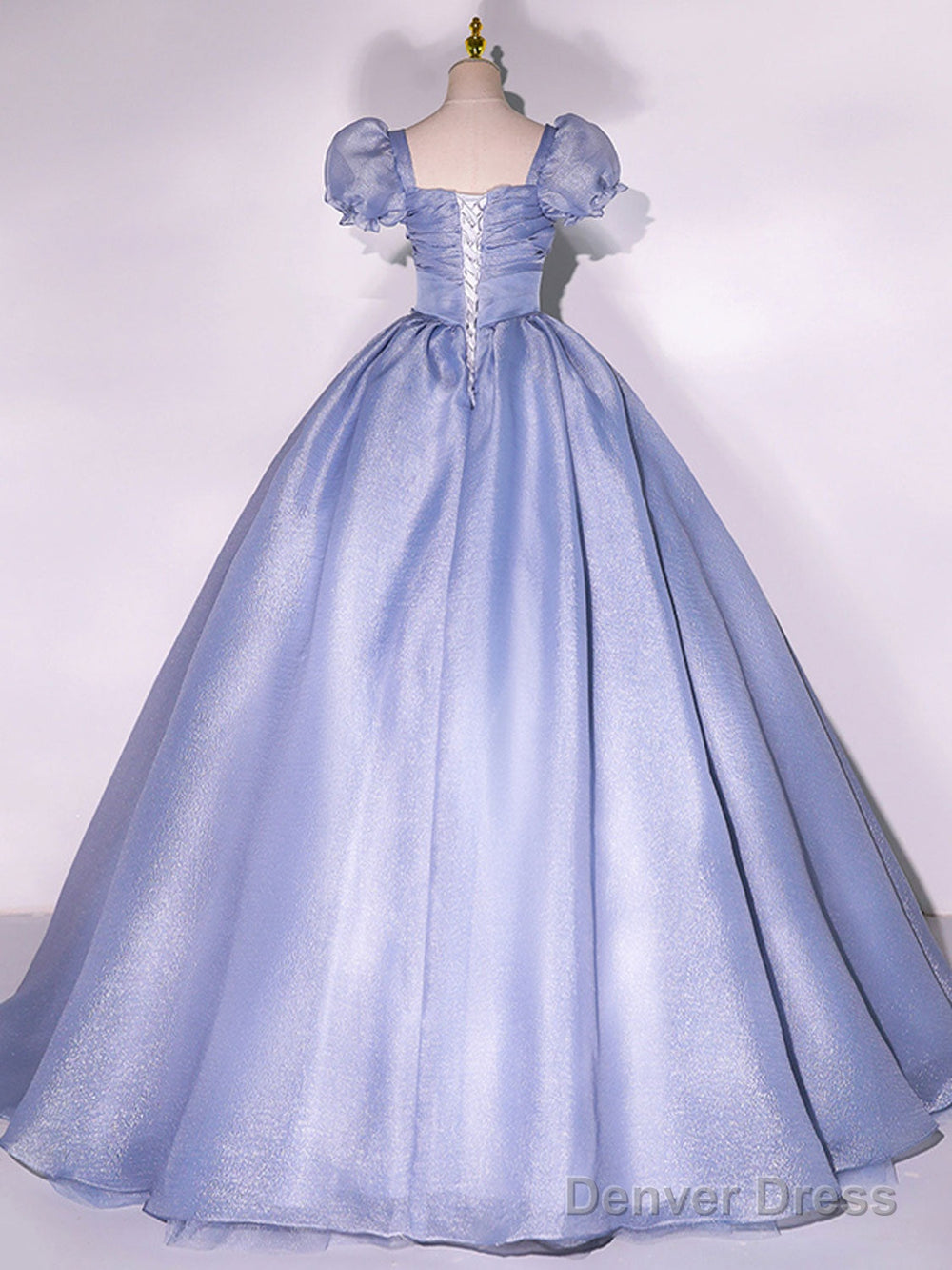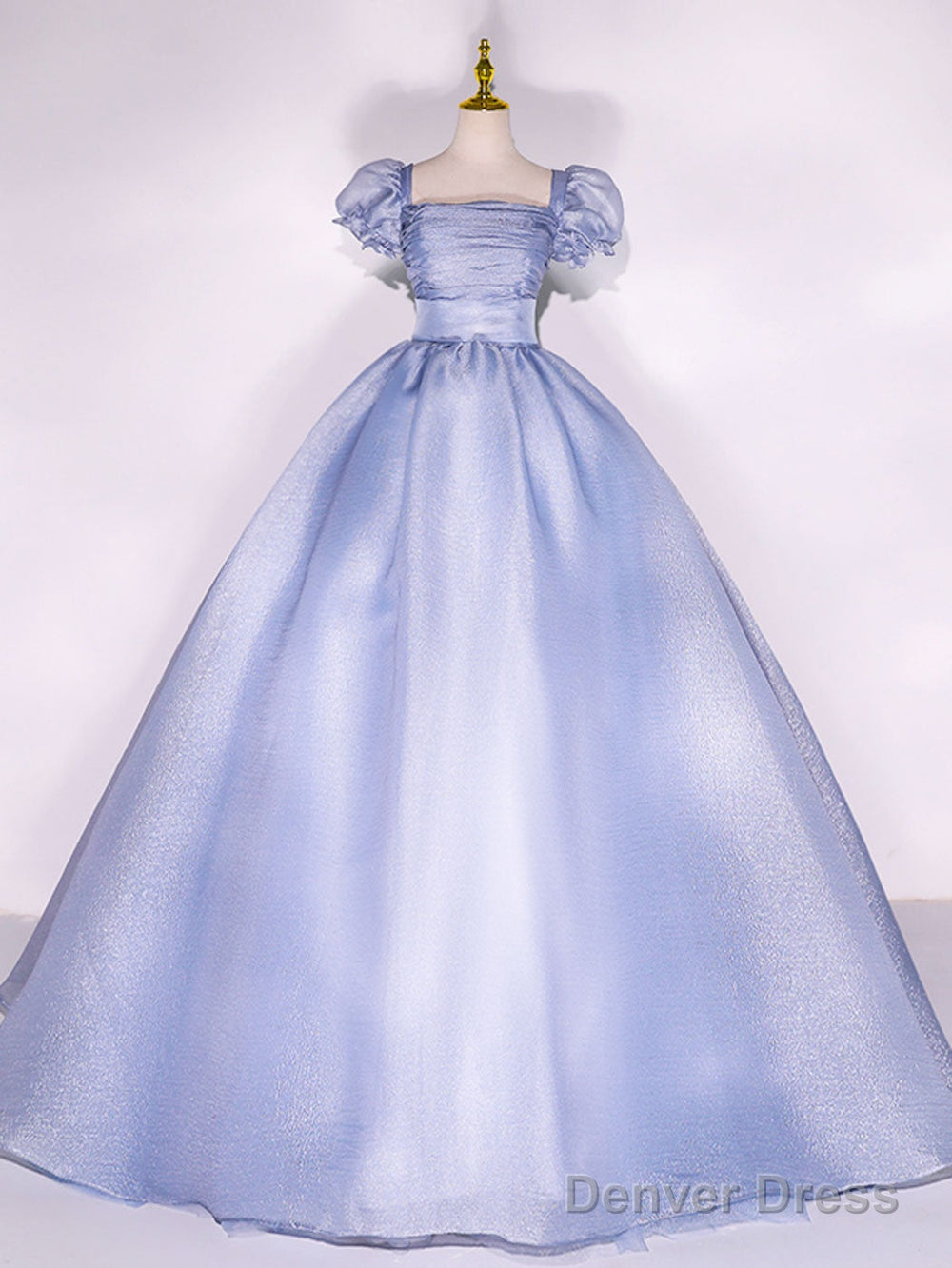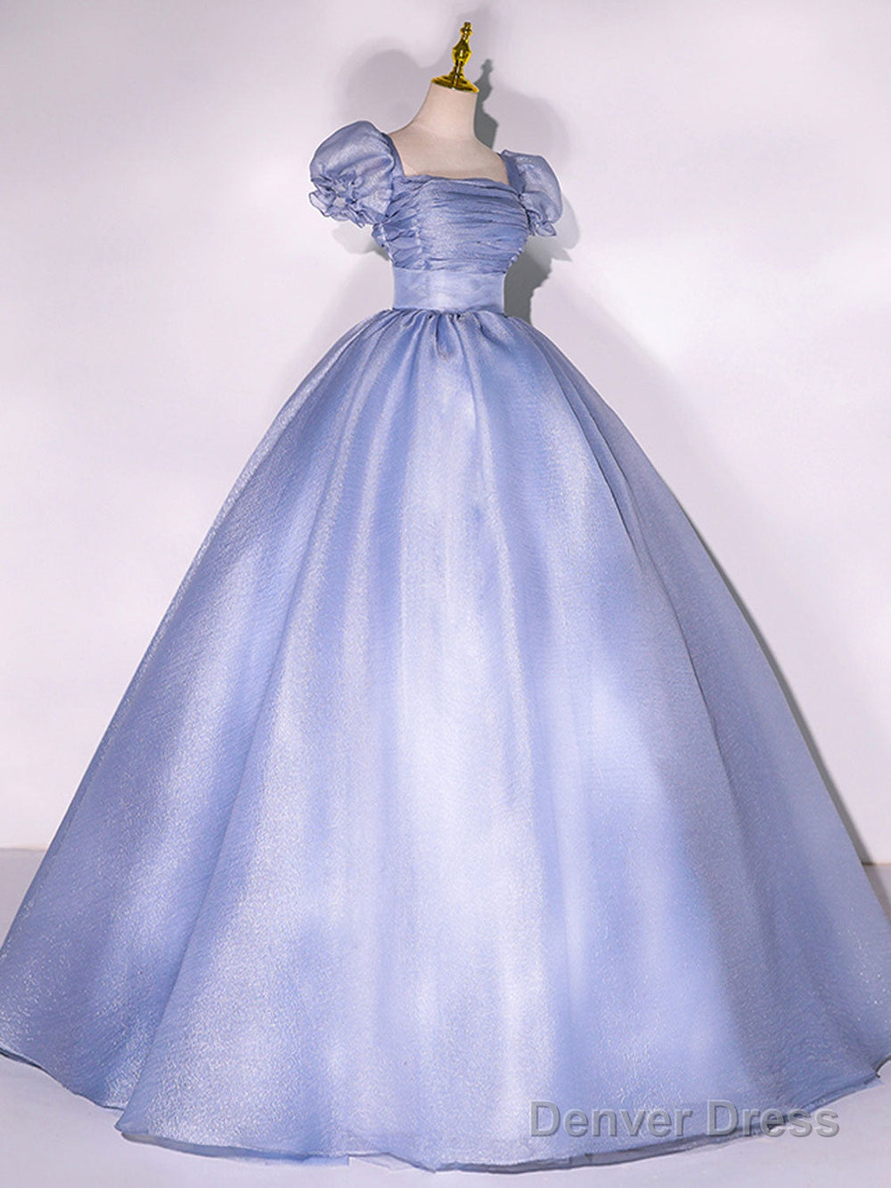 Blue Tulle Long Prom Dress, Tulle Blue Sweet 16 Dress