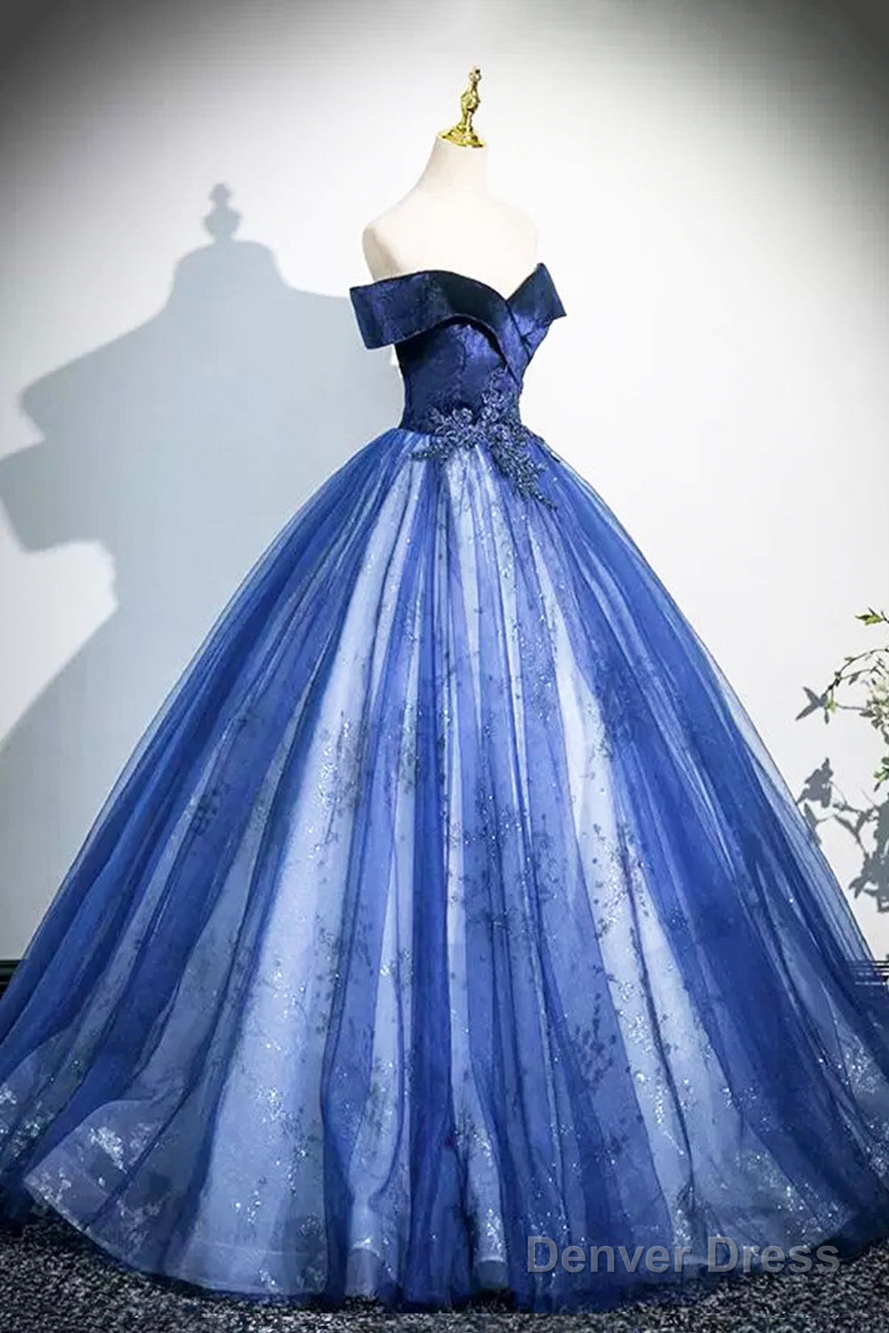Blue Velvet And Tulle Long Prom Dress, Elegant Off The Shoulder Party Dress