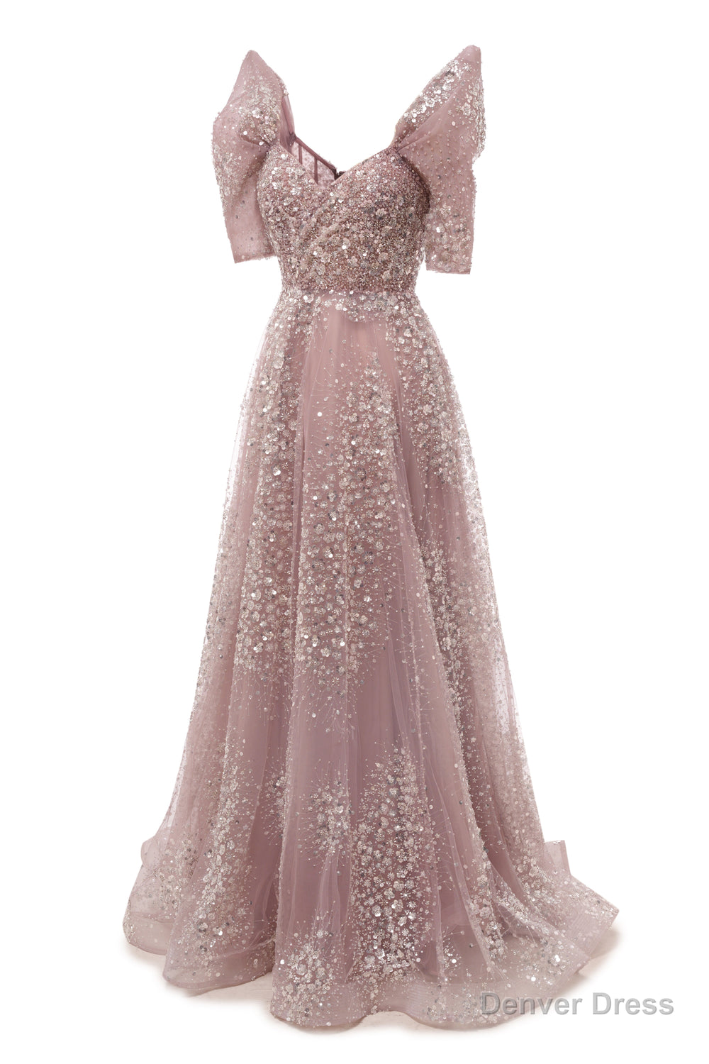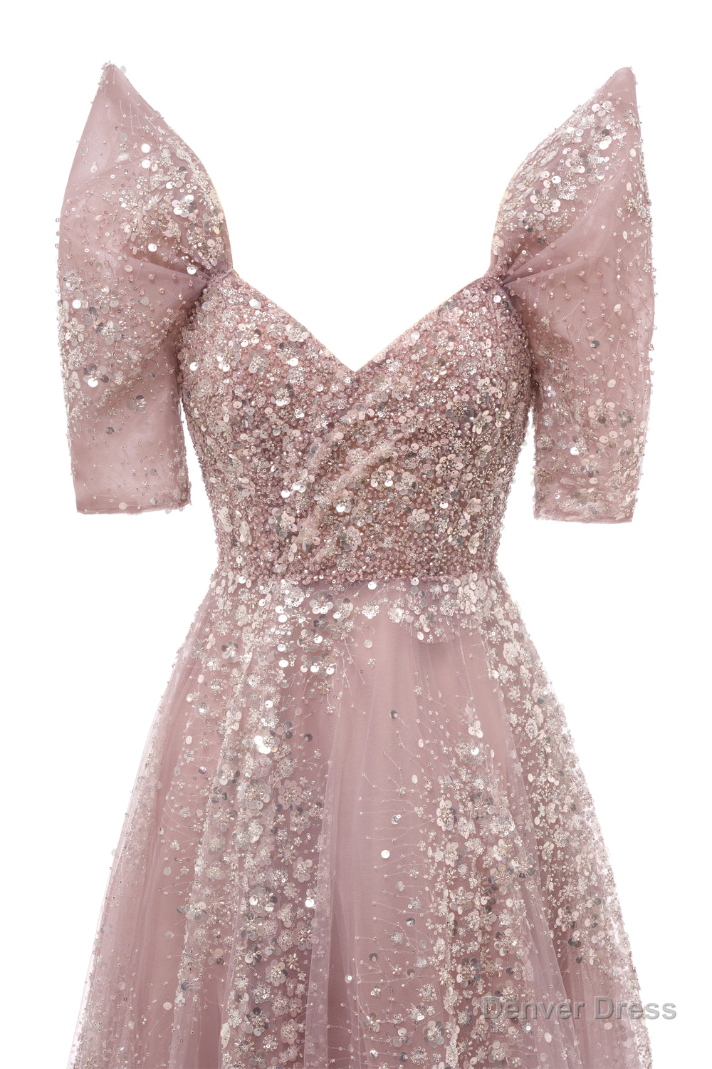 Blushing Pink Lace Crystal Sequin Long Prom Dresses Luxury Evening Gowns Vintage Party Dresses