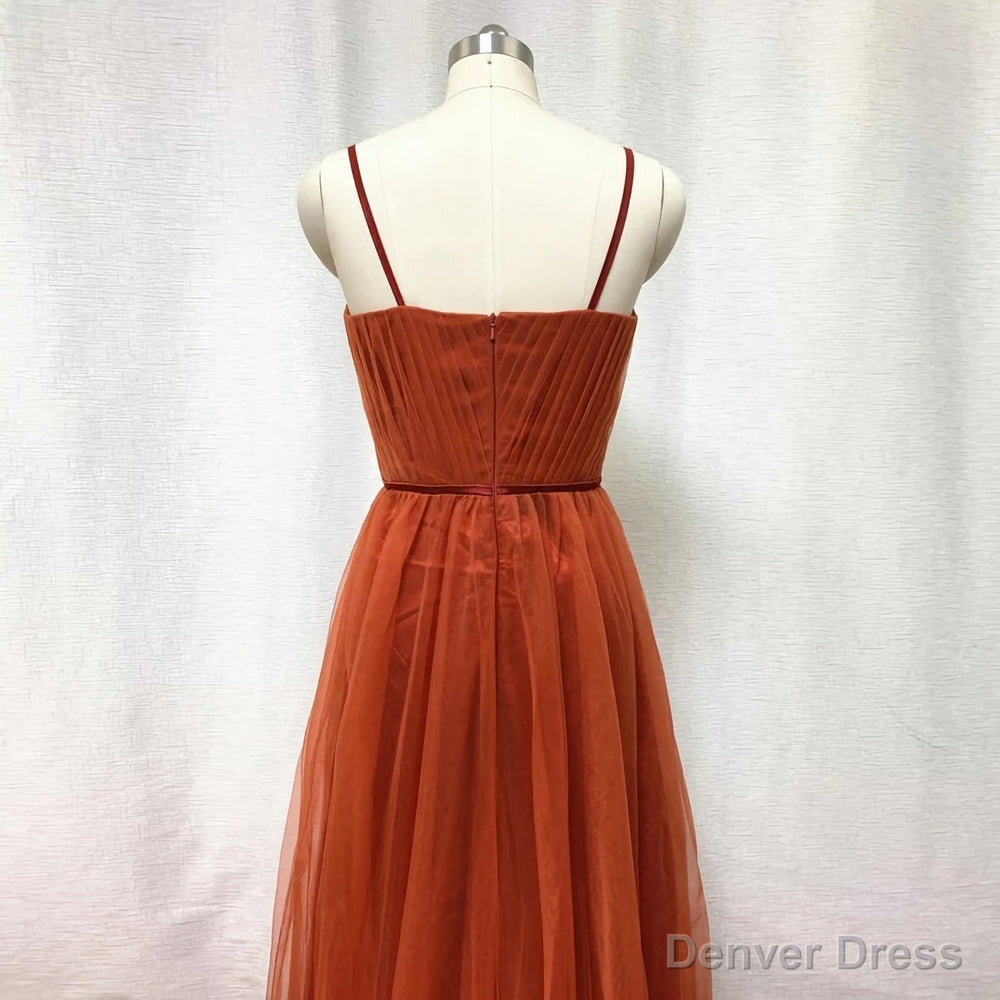 Bridesmaid Dresses, Burnt Tulle Bridesmaid Dress, 2025 Spaghetti Straps Boho
